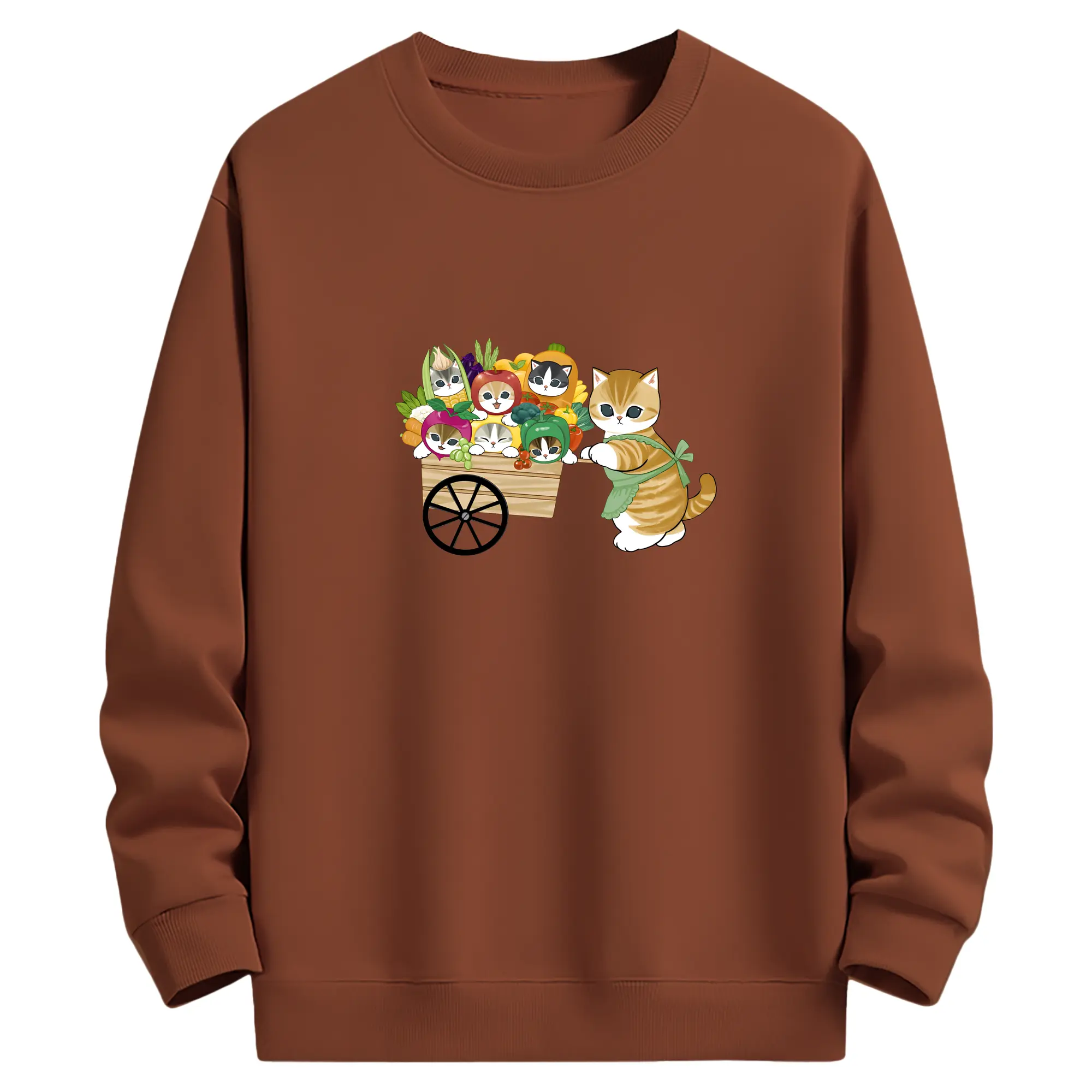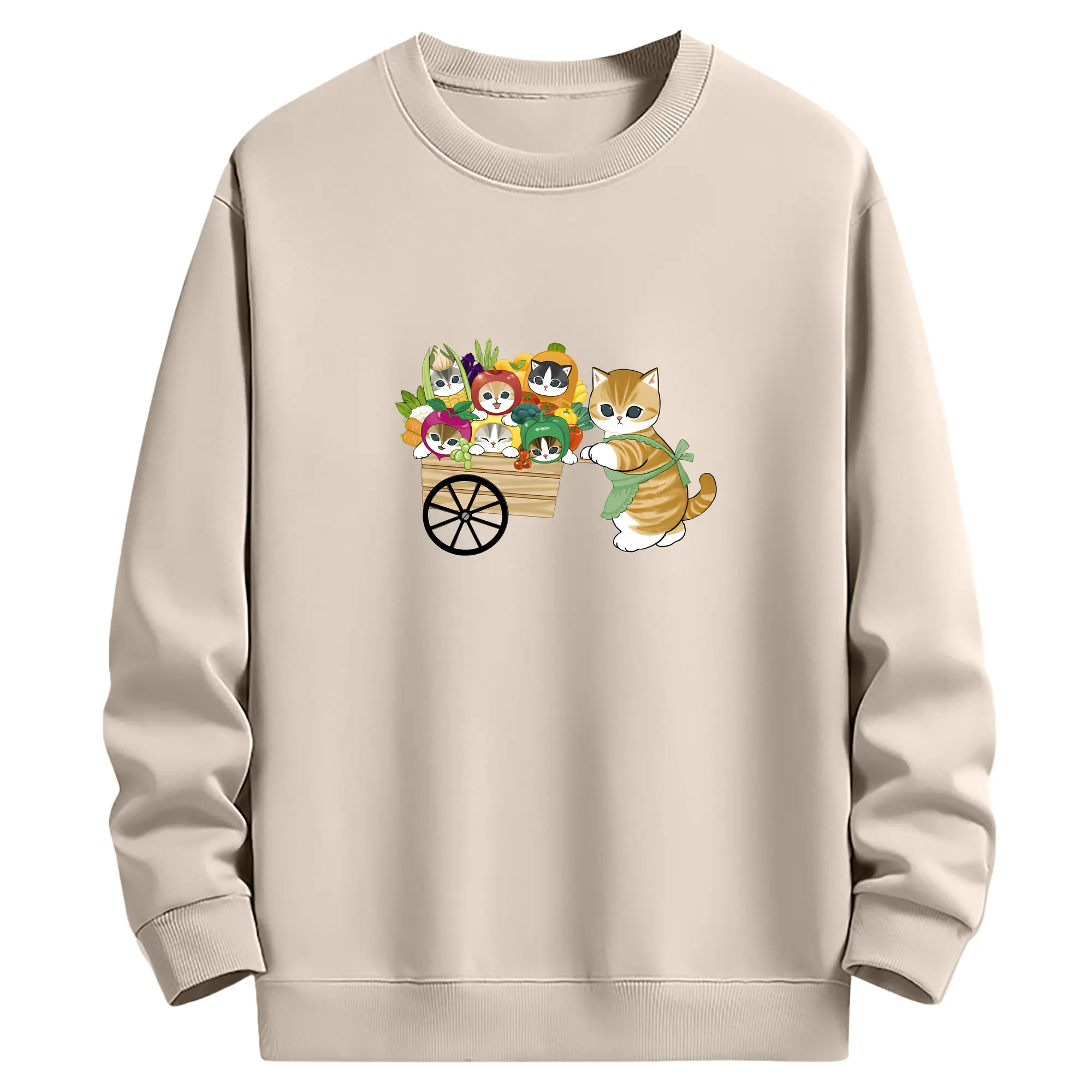 Mofusand 野菜ネコおもしろ&ユニークデザイン - 綿100% ヴィンテージ風 半袖Tシャツ ・ フロントプリント ・ 柔らか肌触り ・ 通気性 快適 ・ スポーツ カジュアル 外出用
