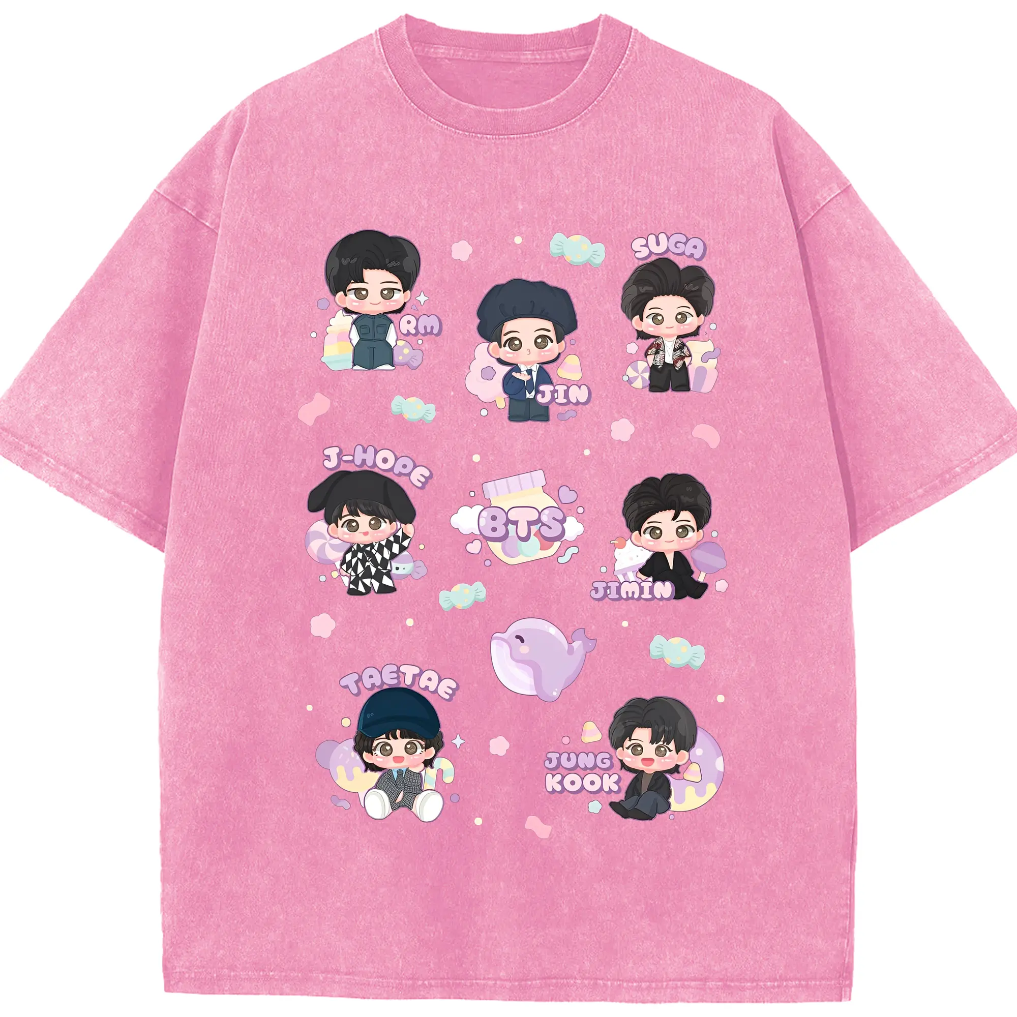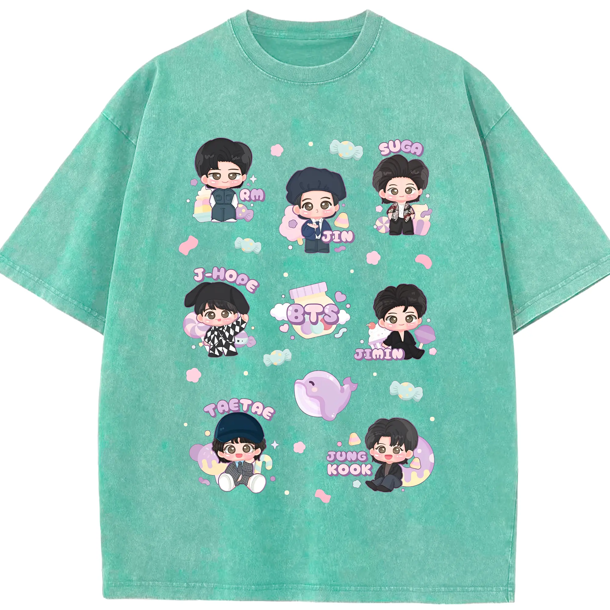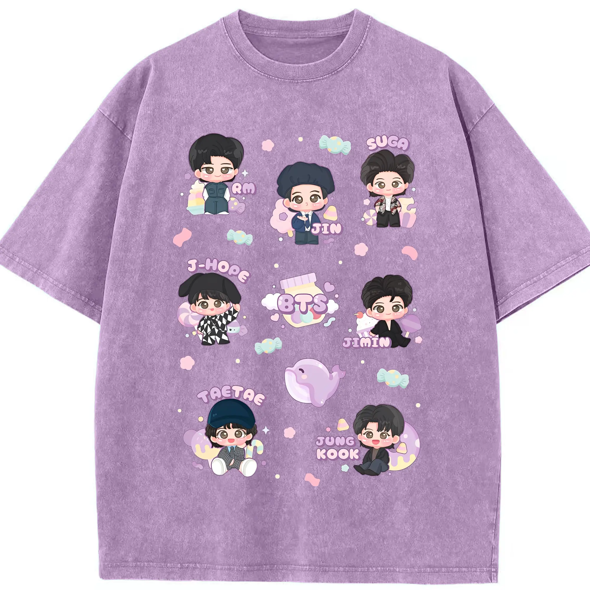 TinyTAN 🐳 × BTS 可愛いデザイン ファンコレクション - 綿100% 半袖Tシャツ ・ フロントプリント ・ 快適 通気性 ・ 日常使い 散歩 スポーツ用