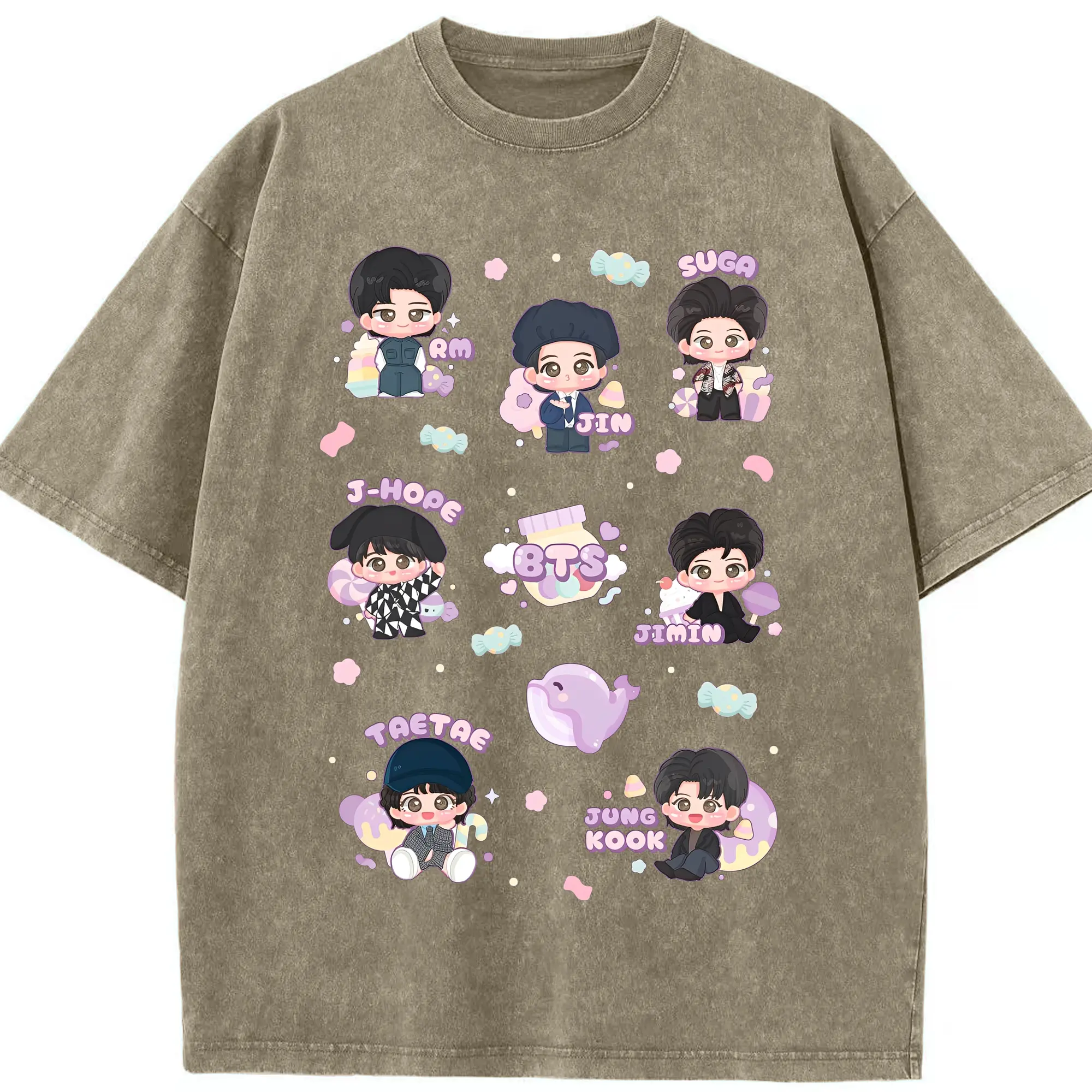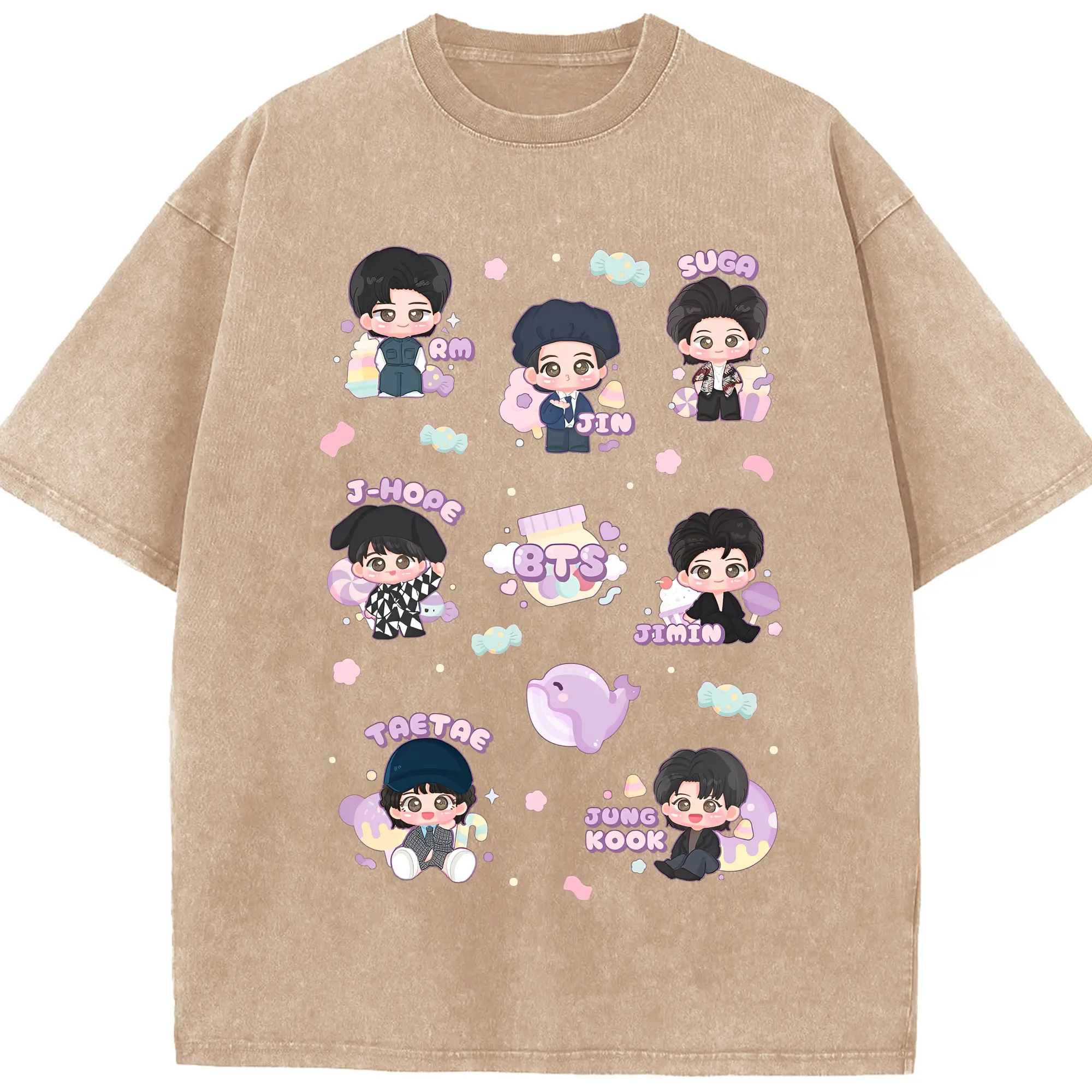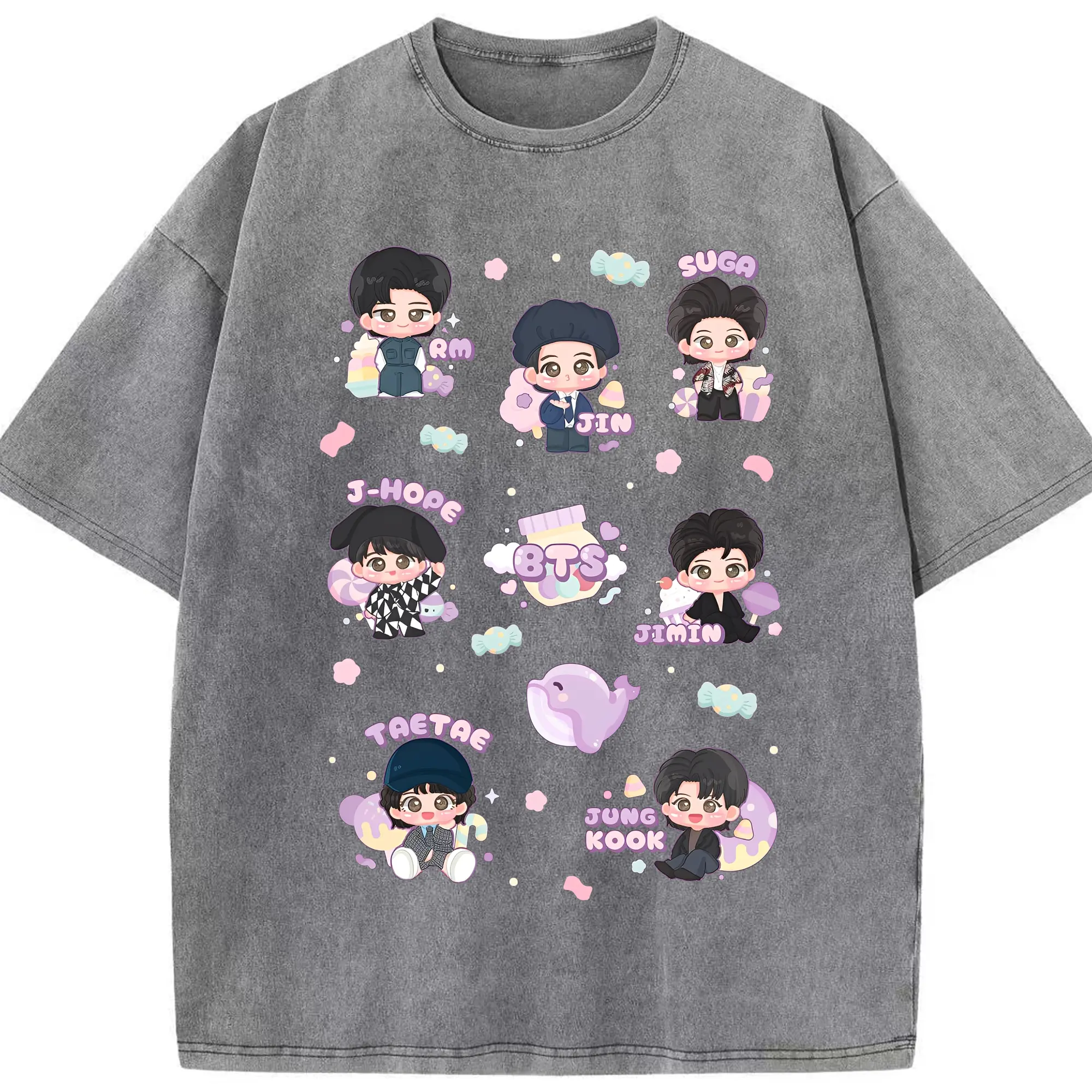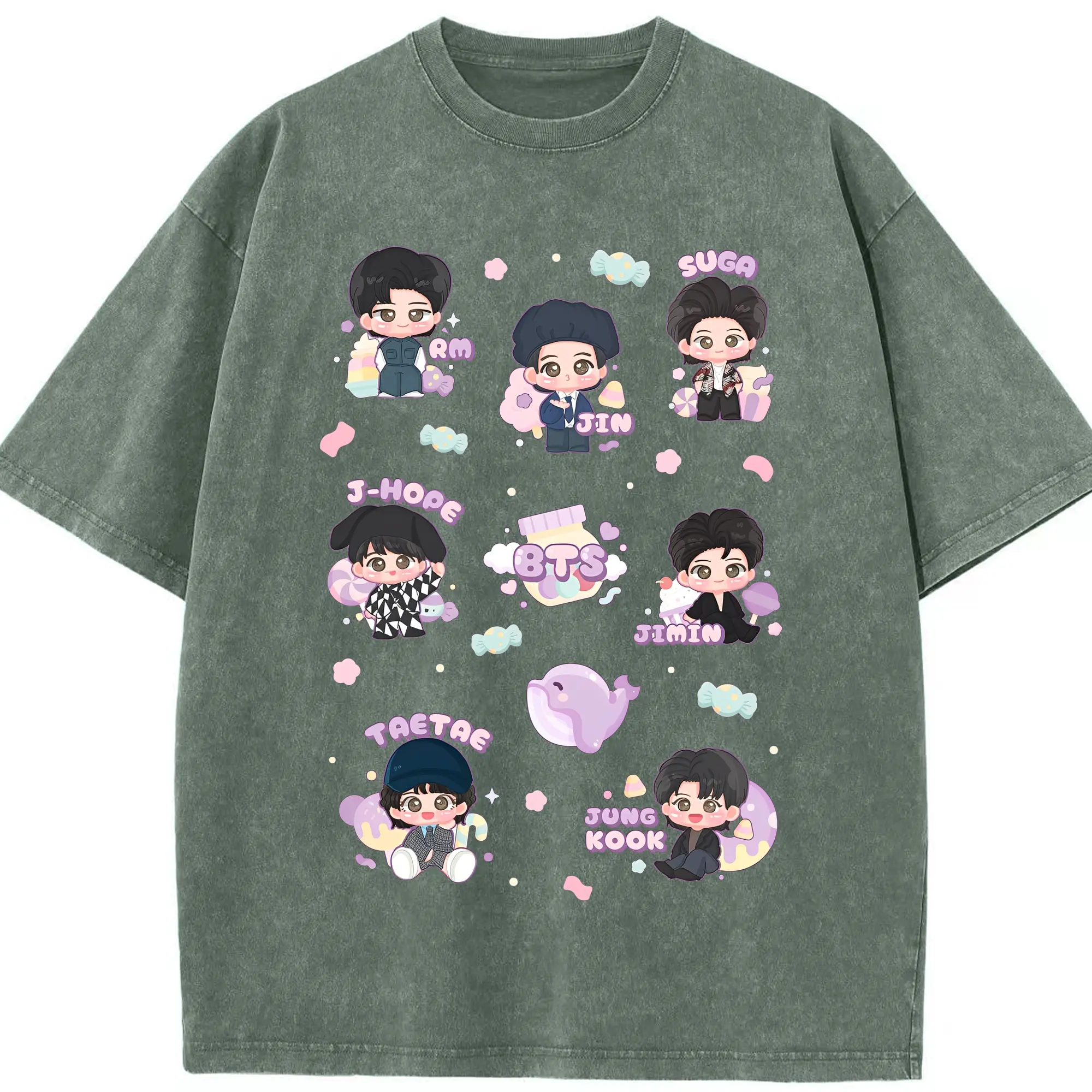 TinyTAN 🐳 × BTS 可愛いデザイン ファンコレクション - 綿100% 半袖Tシャツ ・ フロントプリント ・ 快適 通気性 ・ 日常使い 散歩 スポーツ用
