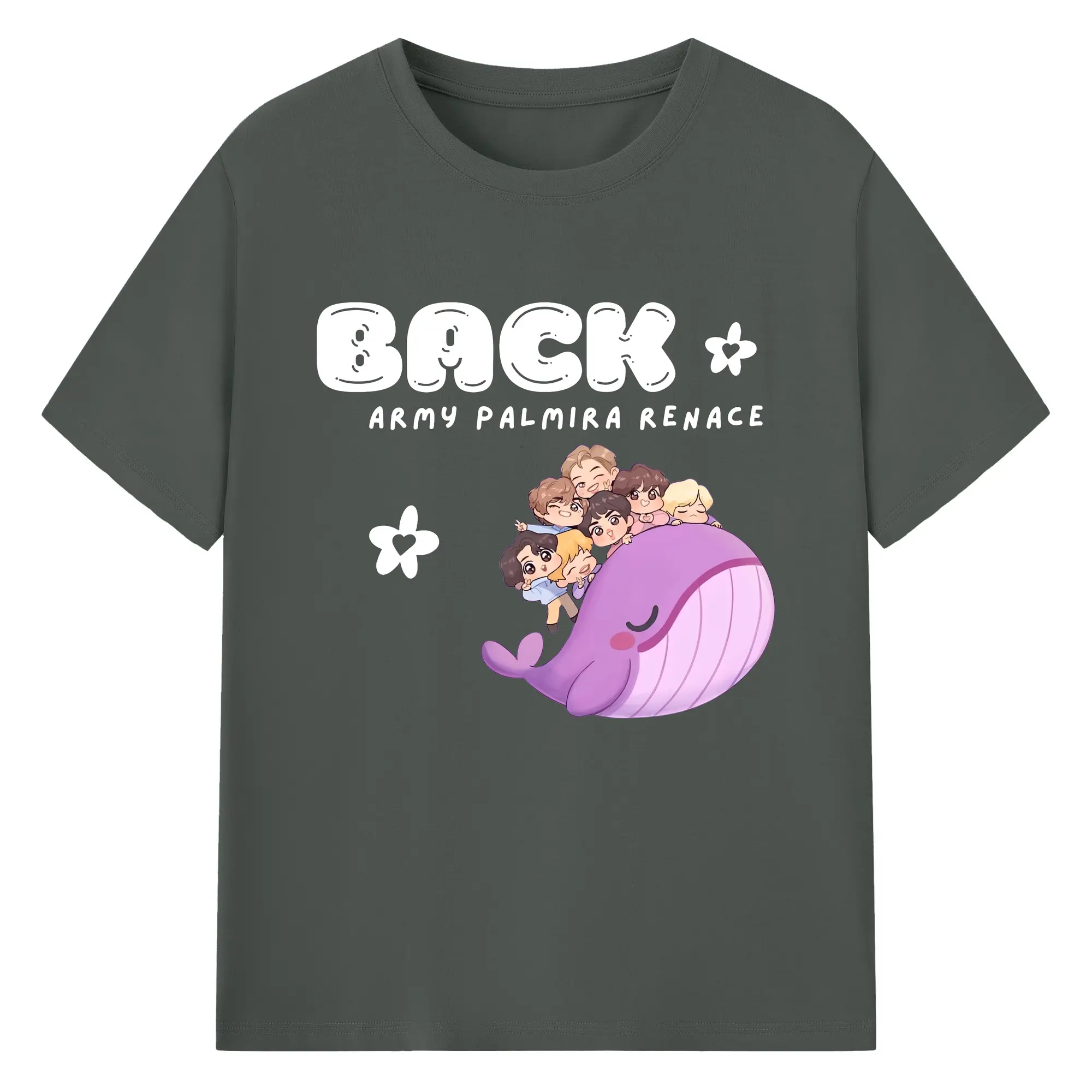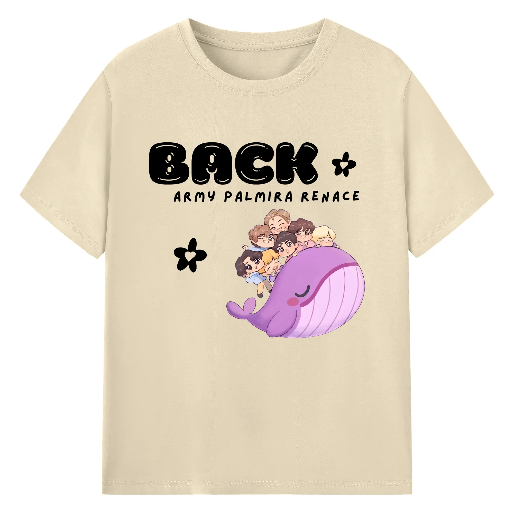 TinyTAN × BTS 🐳 限定カートゥーン 人気グッズ - 綿100% ヴィンテージ風 半袖Tシャツ ・ フロントプリント ・ 柔らか肌触り ・ 通気性 快適 ・ スポーツ カジュアル 外出用
