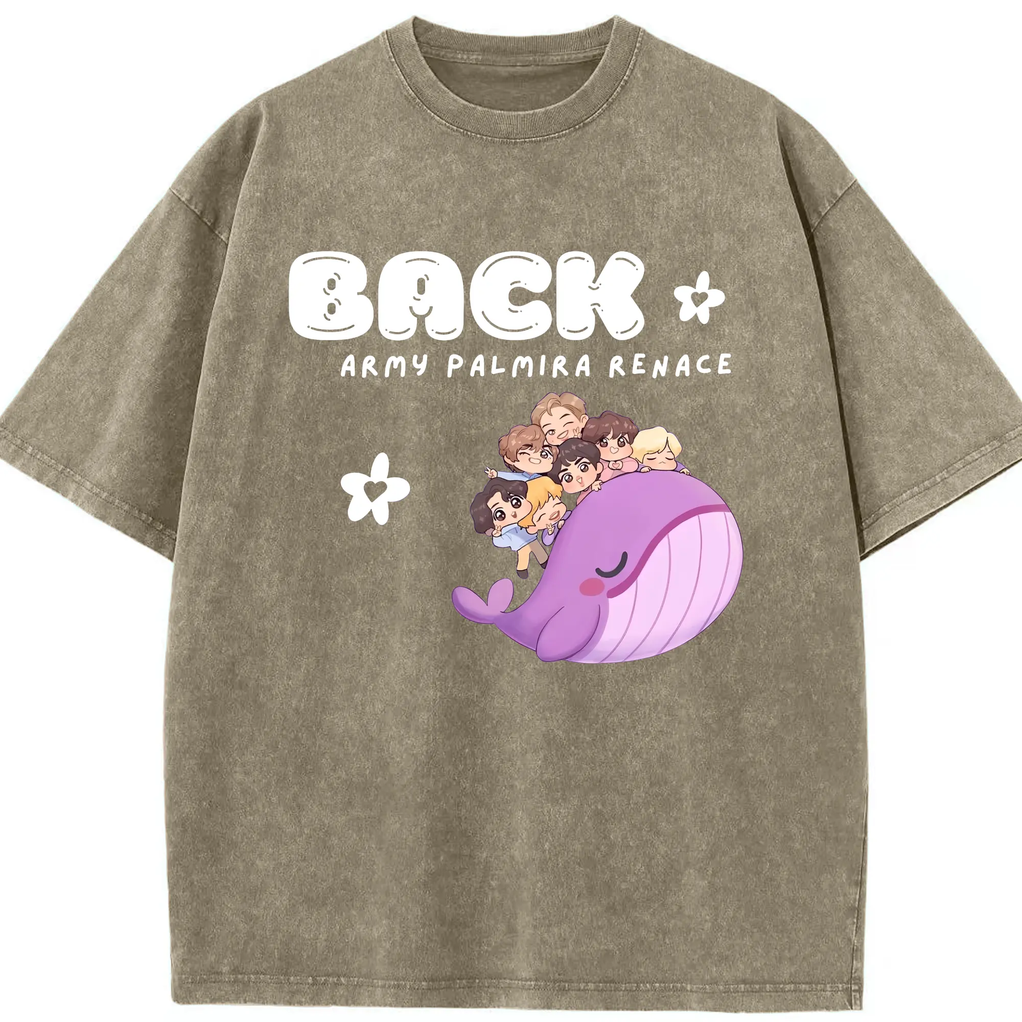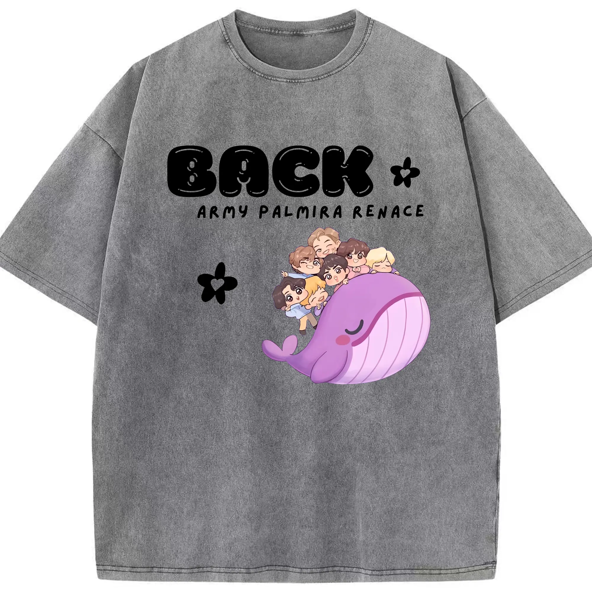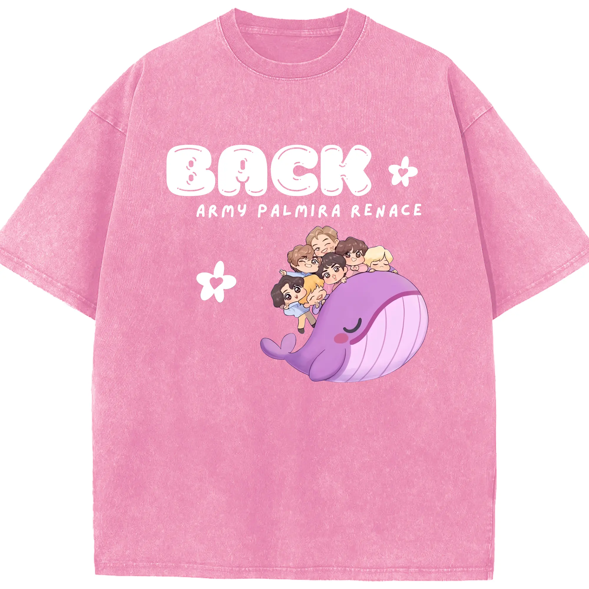 TinyTAN × BTS 🐳 限定カートゥーン 人気グッズ - 綿100% 半袖Tシャツ ・ フロントプリント ・ 快適 通気性 ・ 日常使い 散歩 スポーツ用