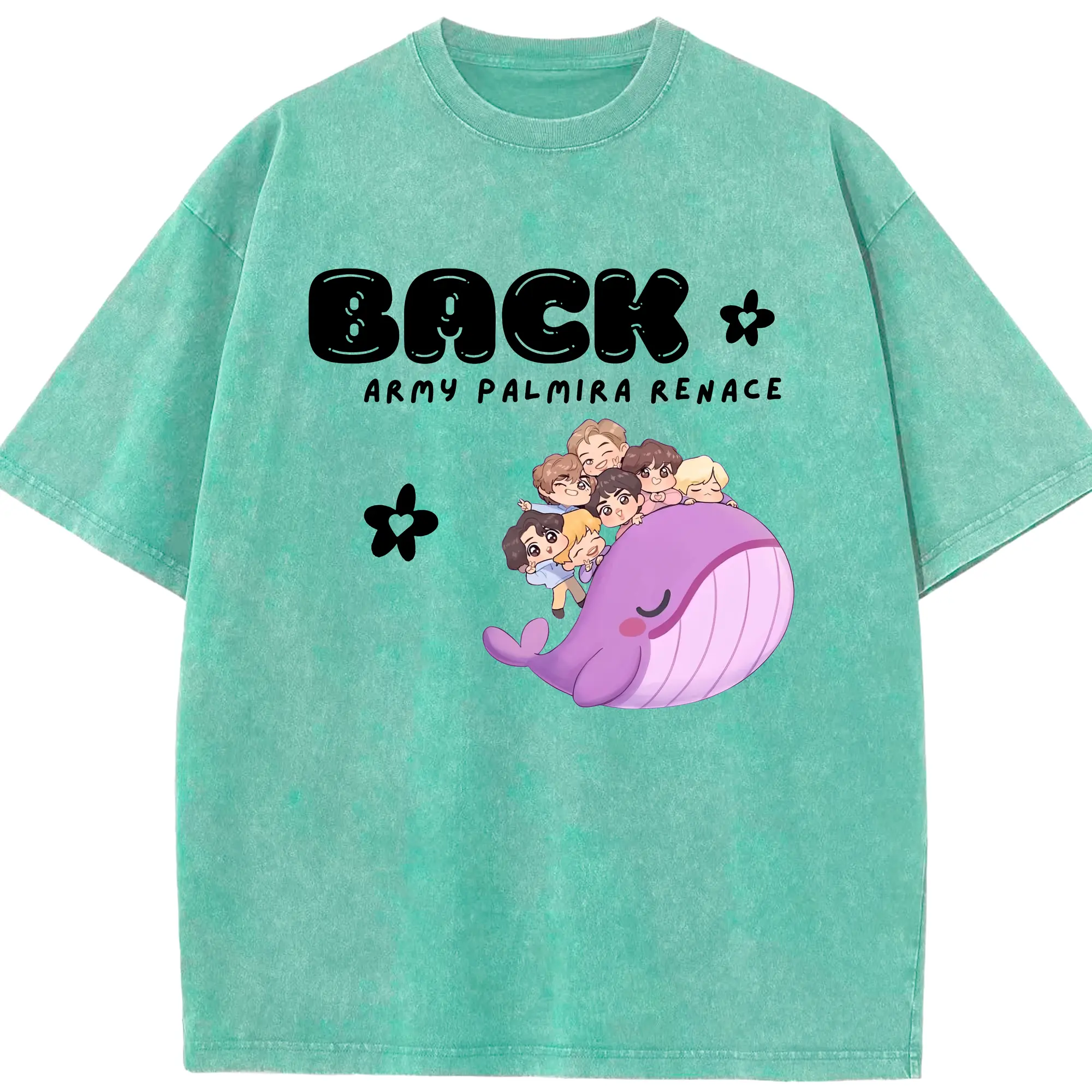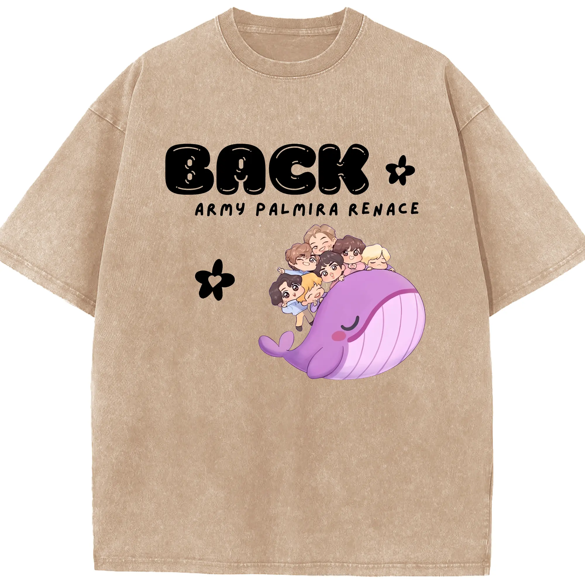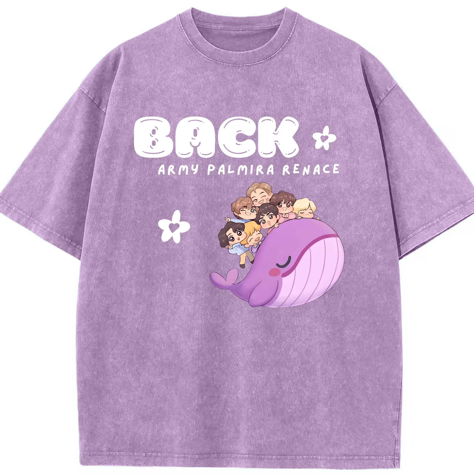 TinyTAN × BTS 🐳 限定カートゥーン 人気グッズ - 綿100% 半袖Tシャツ ・ フロントプリント ・ 快適 通気性 ・ 日常使い 散歩 スポーツ用