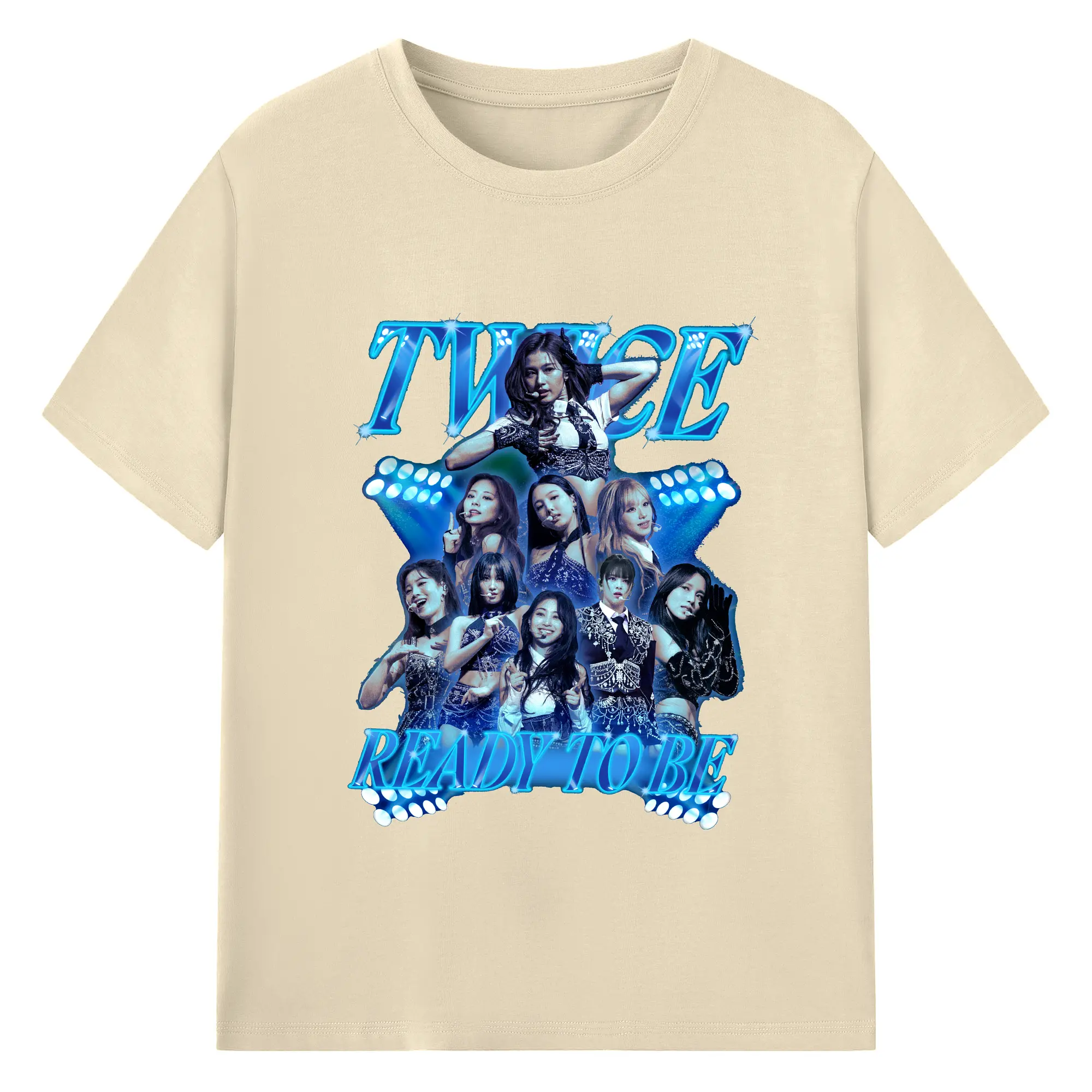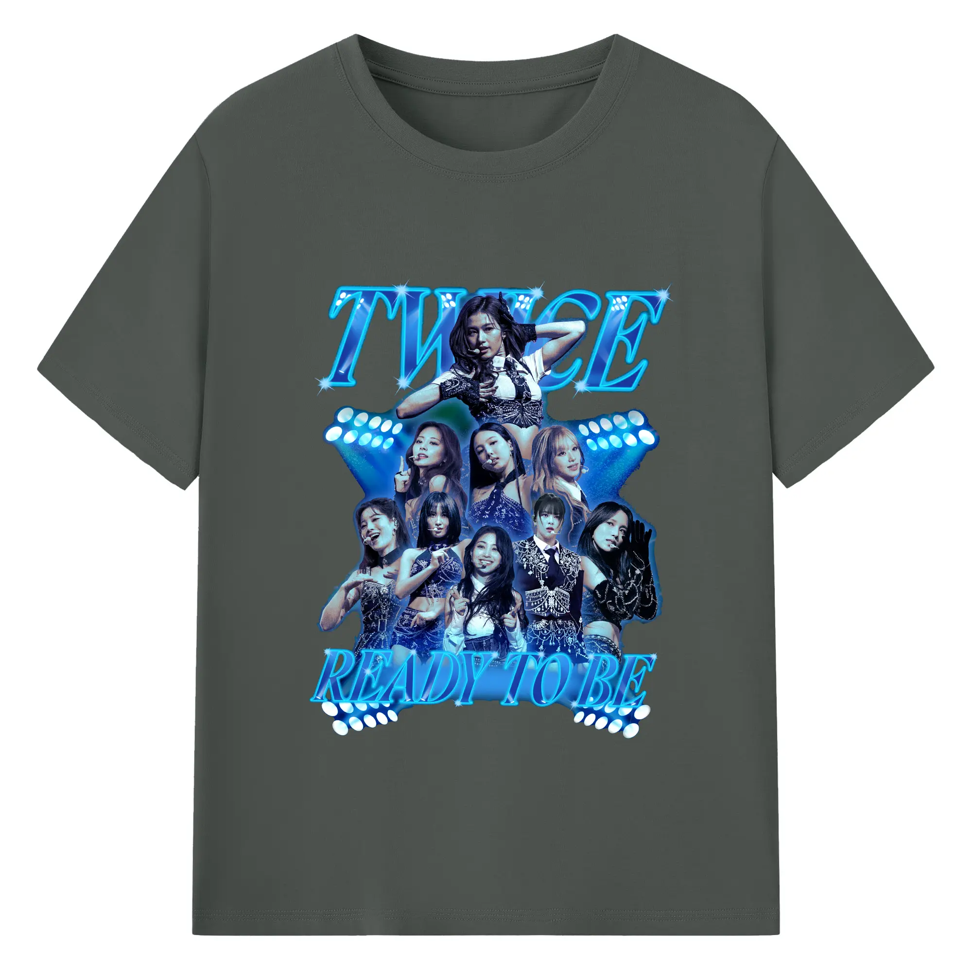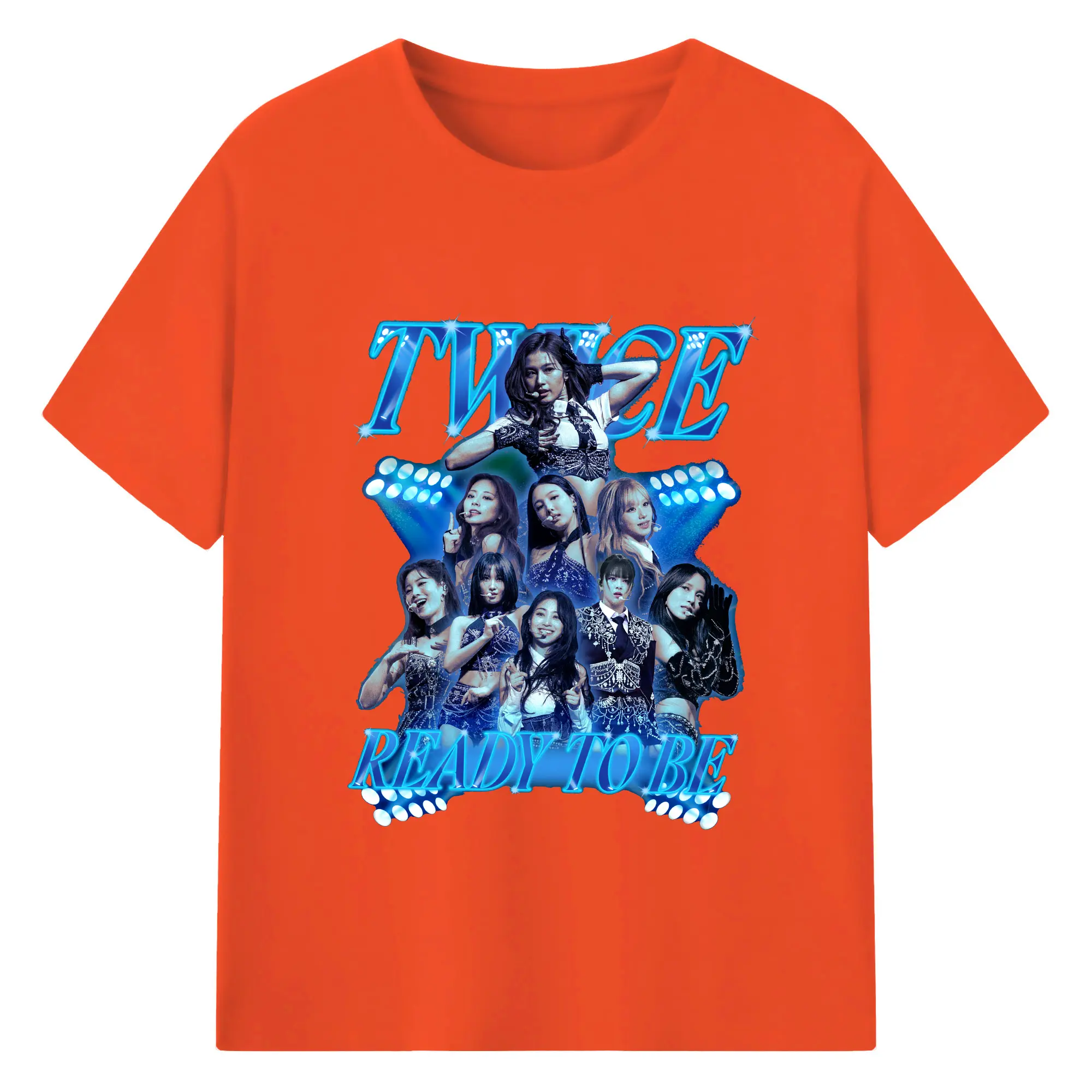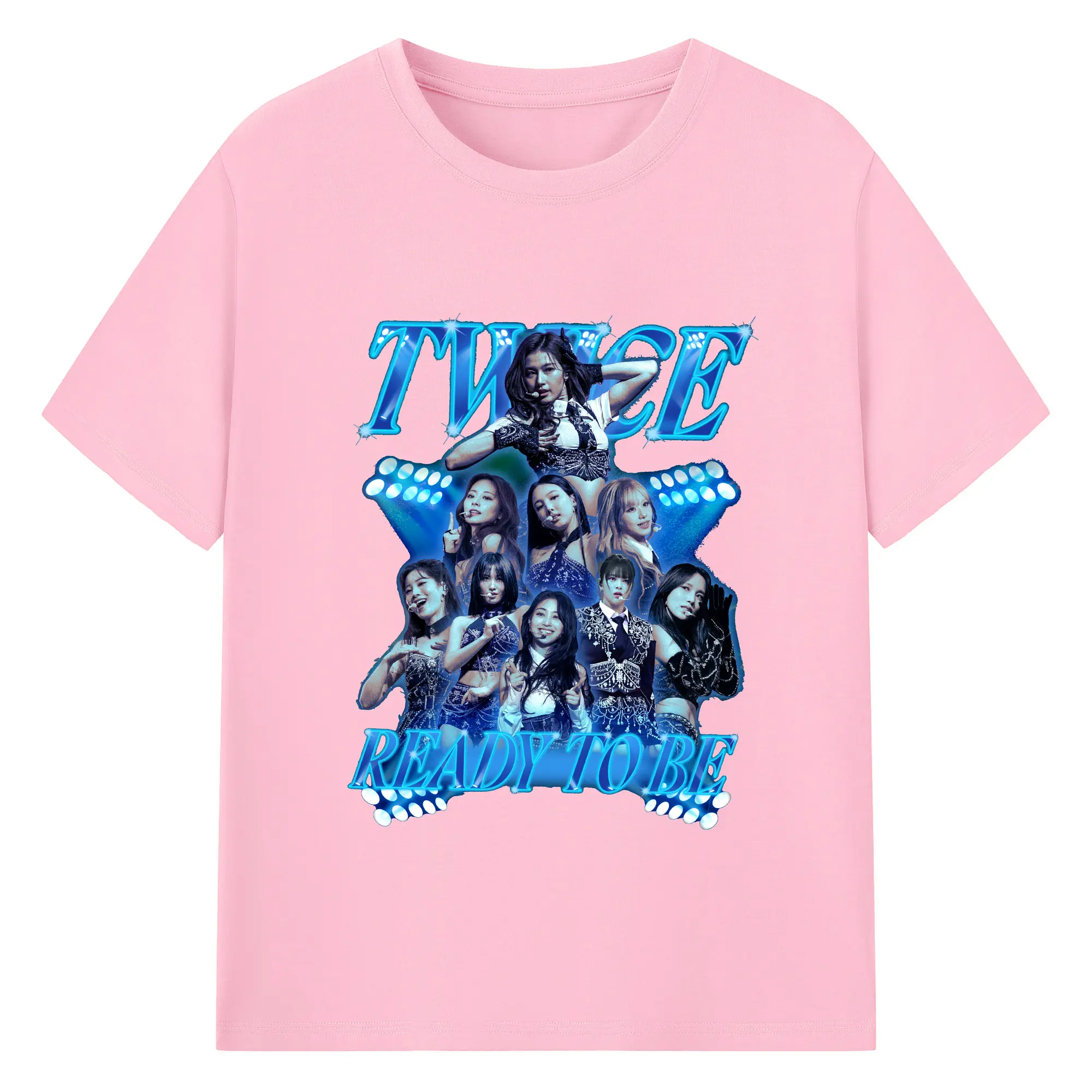 TWICE ロゴプリント💘シンプル×韓流スタイル 人気アイドル風コーデ - 綿100% ヴィンテージ風 半袖Tシャツ ・ フロントプリント ・ 柔らか肌触り ・ 通気性 快適 ・ スポーツ カジュアル 外出用