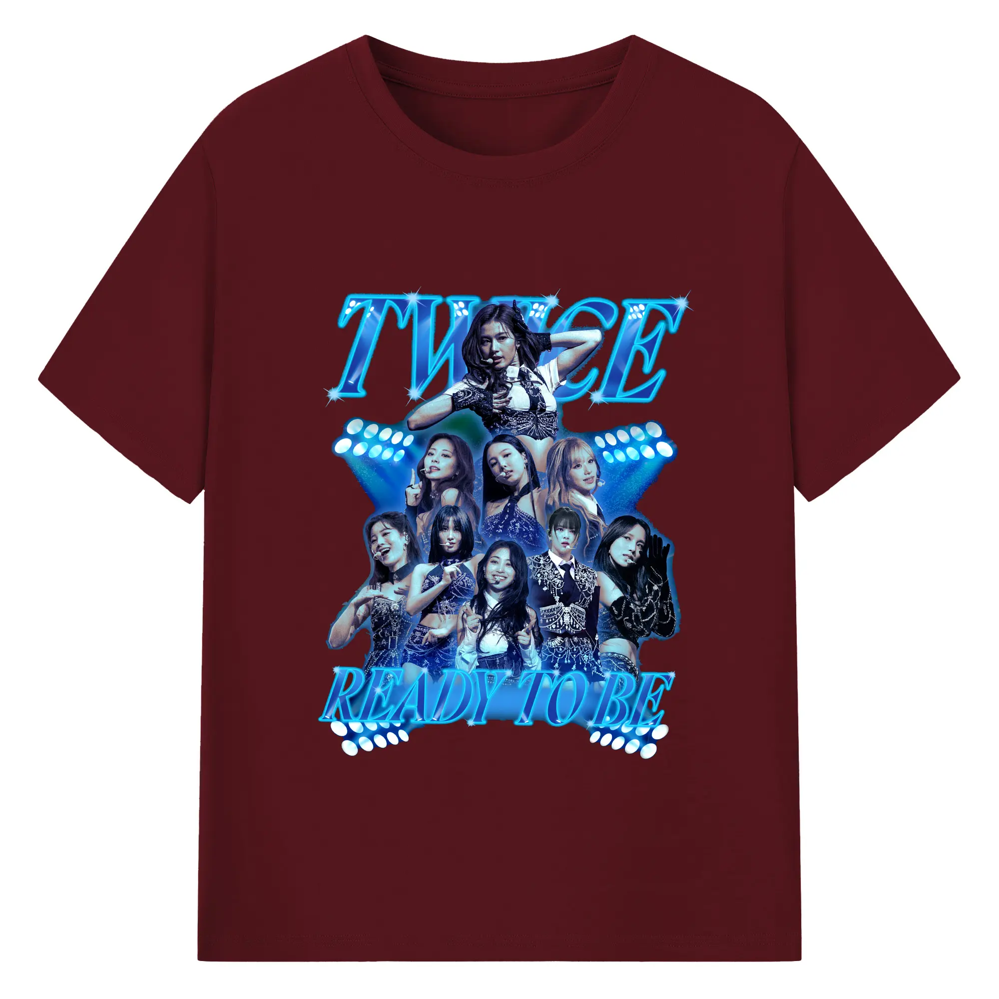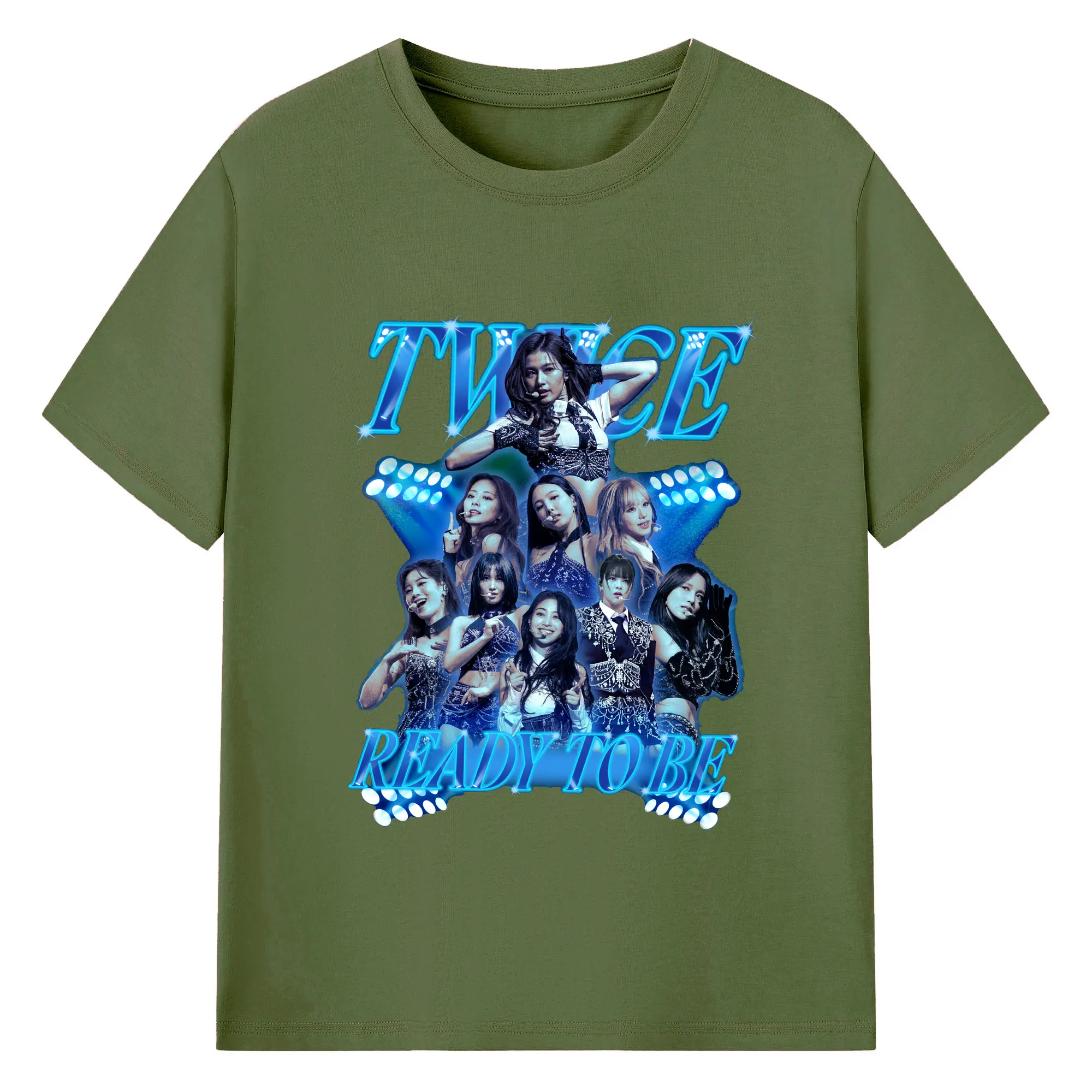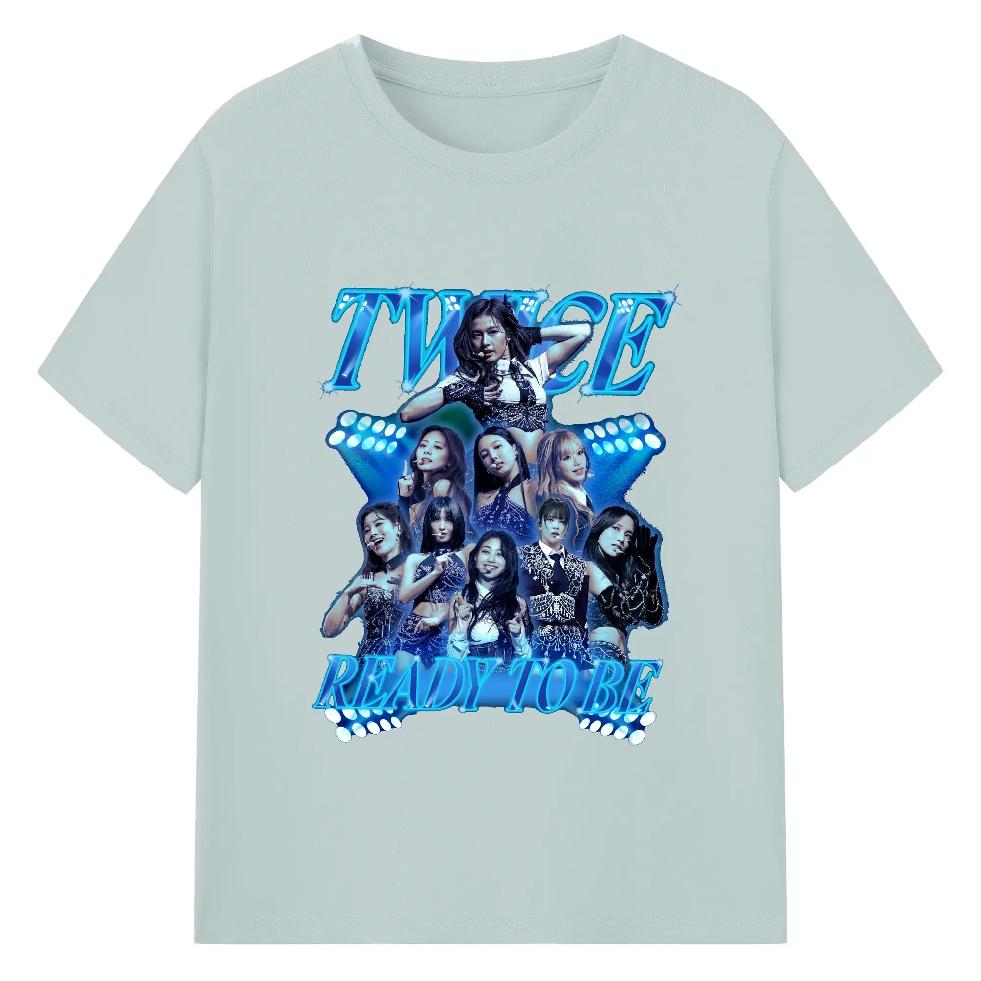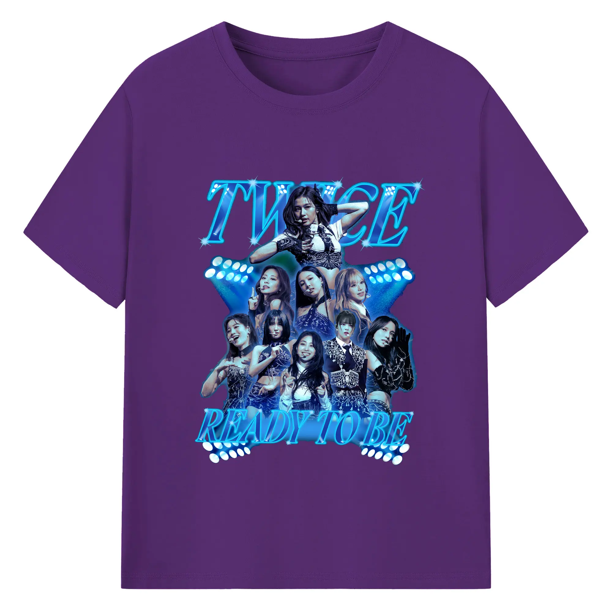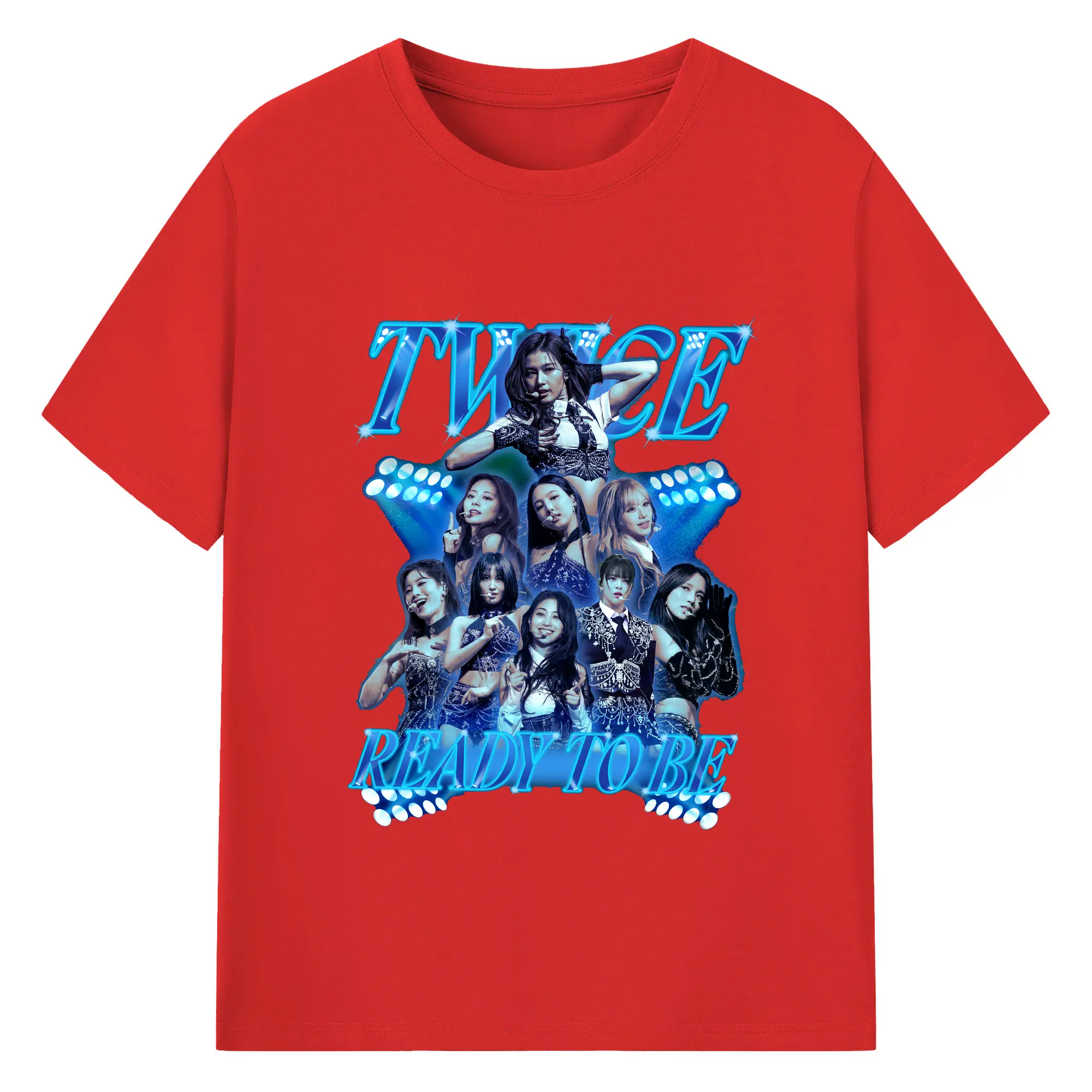 TWICE ロゴプリント💘シンプル×韓流スタイル 人気アイドル風コーデ - 綿100% ヴィンテージ風 半袖Tシャツ ・ フロントプリント ・ 柔らか肌触り ・ 通気性 快適 ・ スポーツ カジュアル 外出用