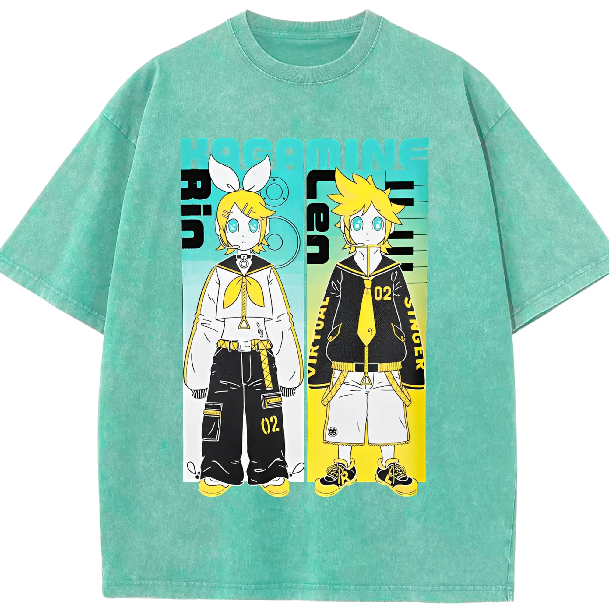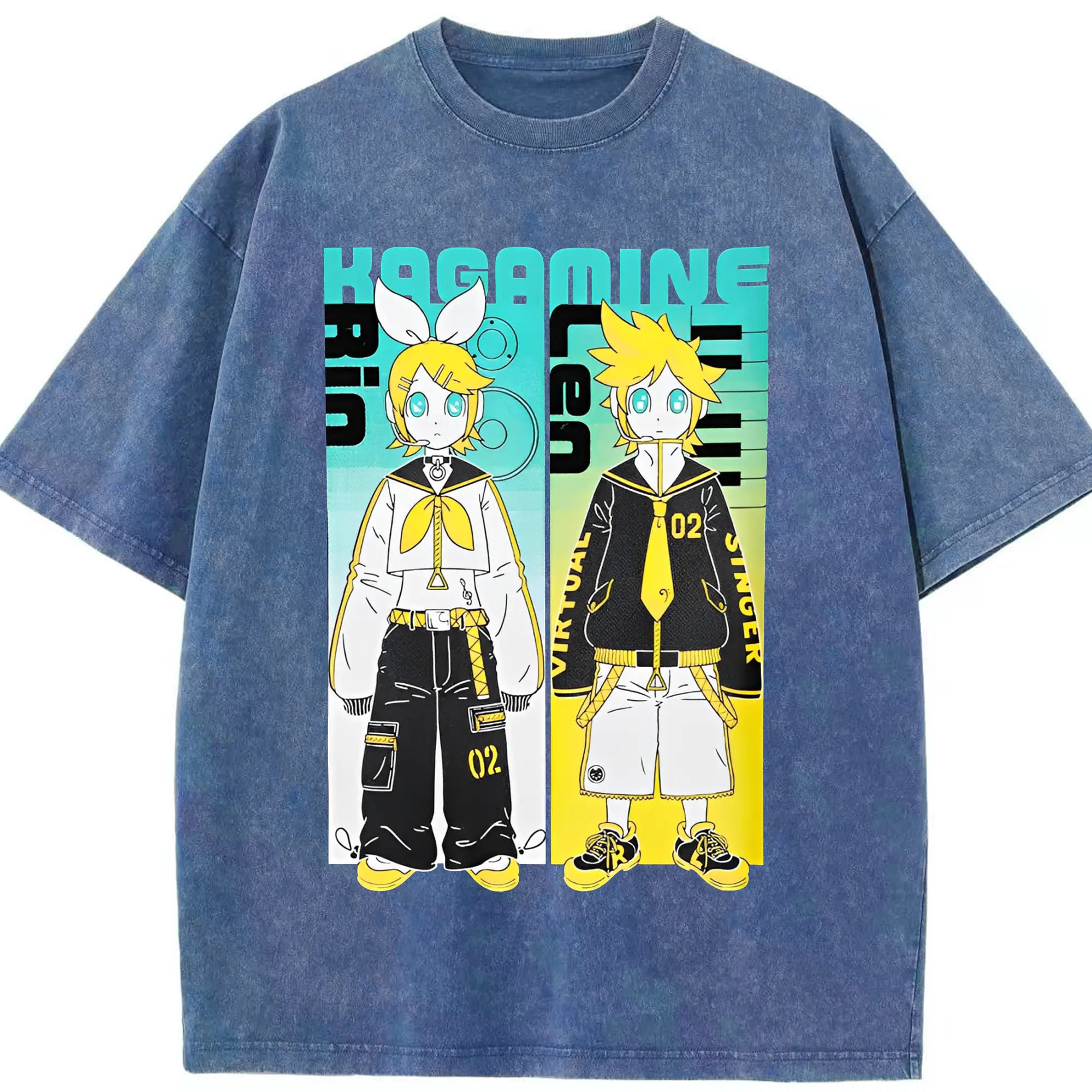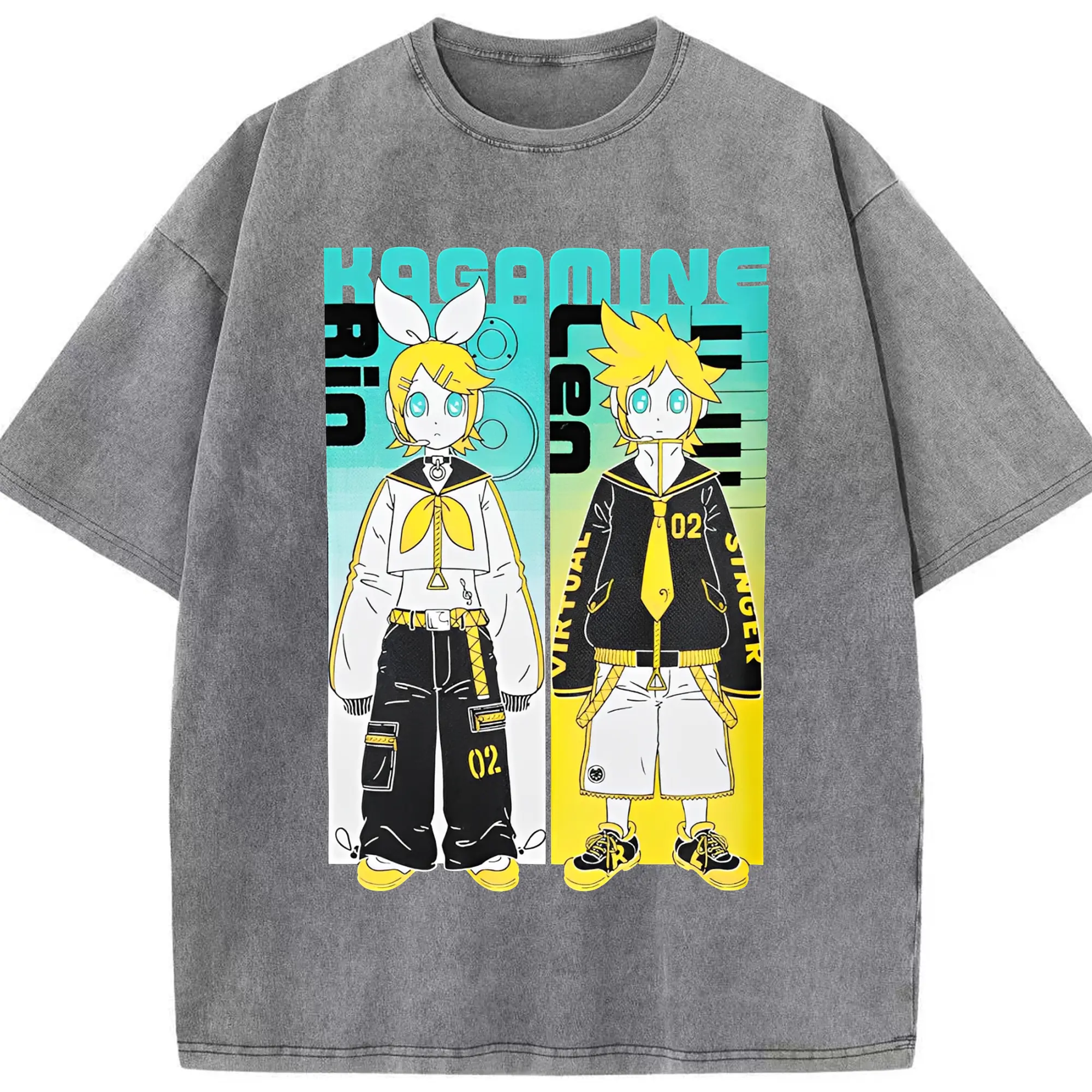 VOCALOID Kagamine Rin/Len 02 - 綿100% 半袖Tシャツ ・ フロントプリント ・ 快適 通気性 ・ 日常使い 散歩 スポーツ用