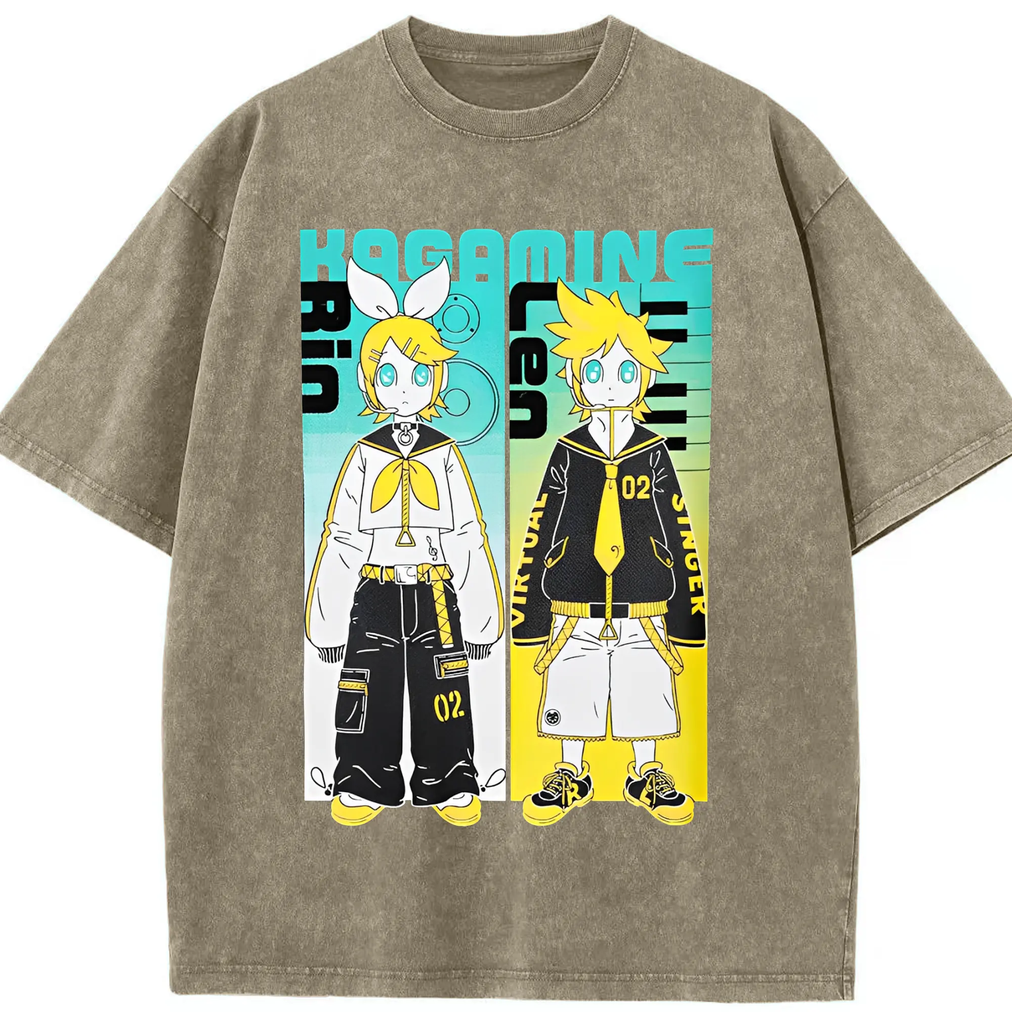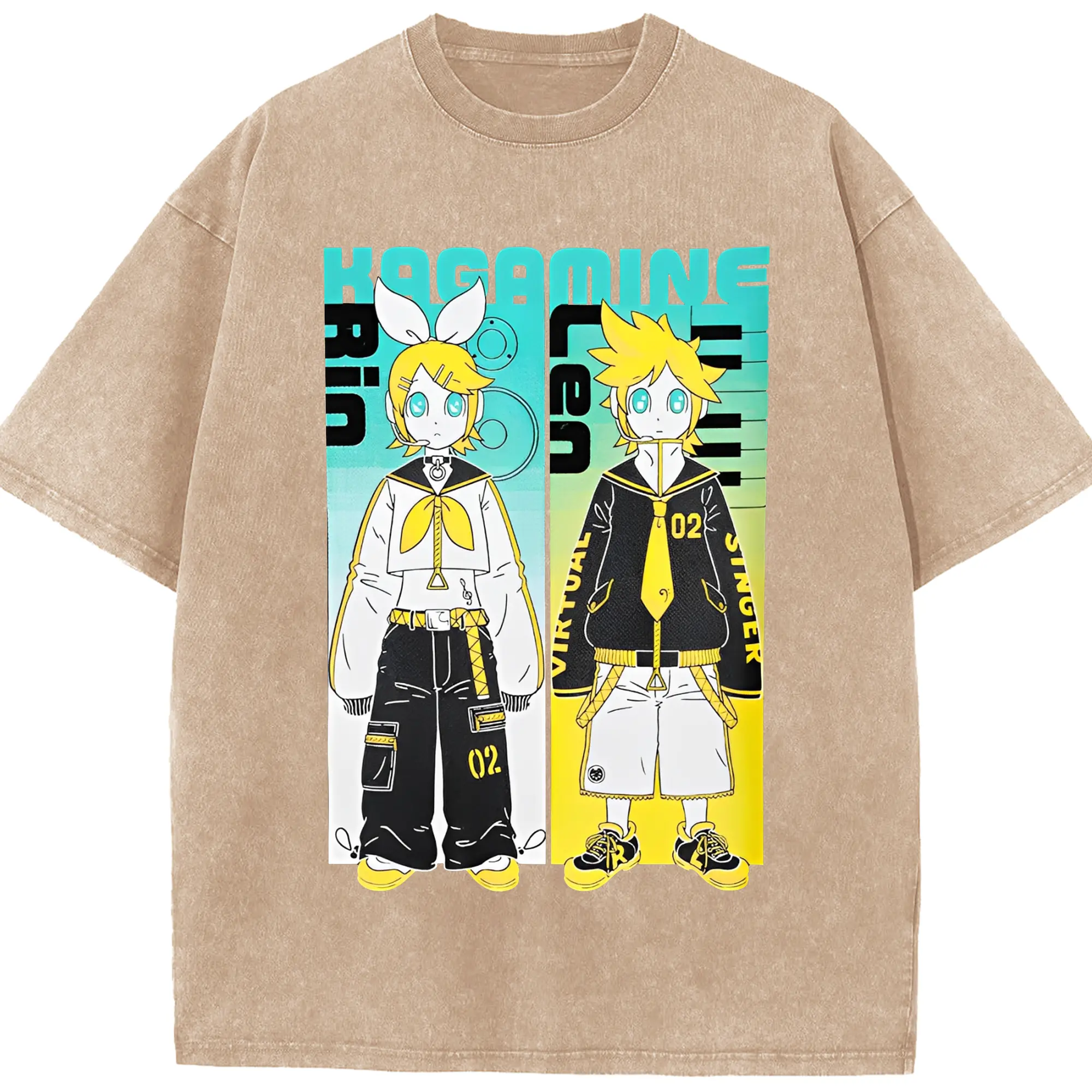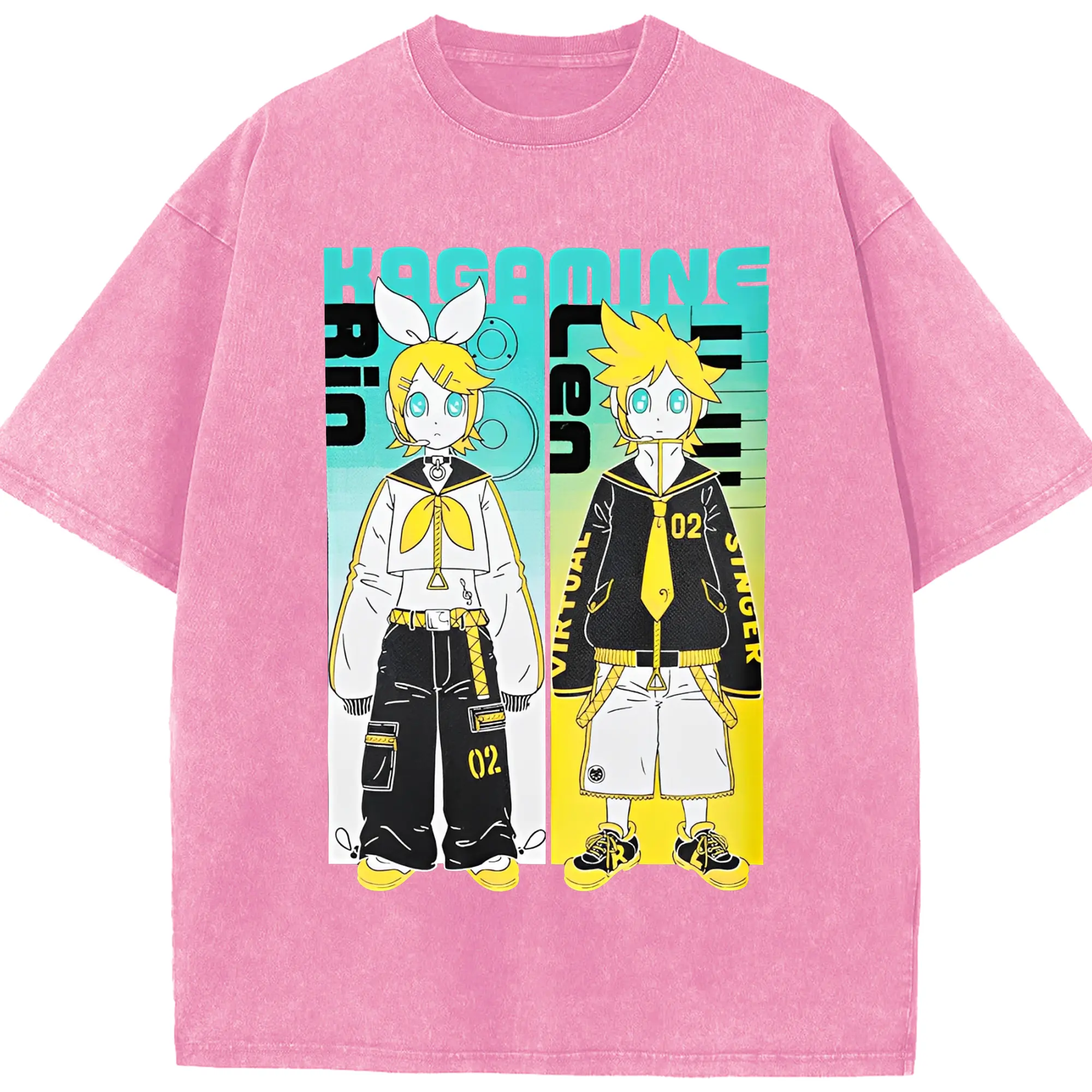 VOCALOID Kagamine Rin/Len 02 - 綿100% 半袖Tシャツ ・ フロントプリント ・ 快適 通気性 ・ 日常使い 散歩 スポーツ用