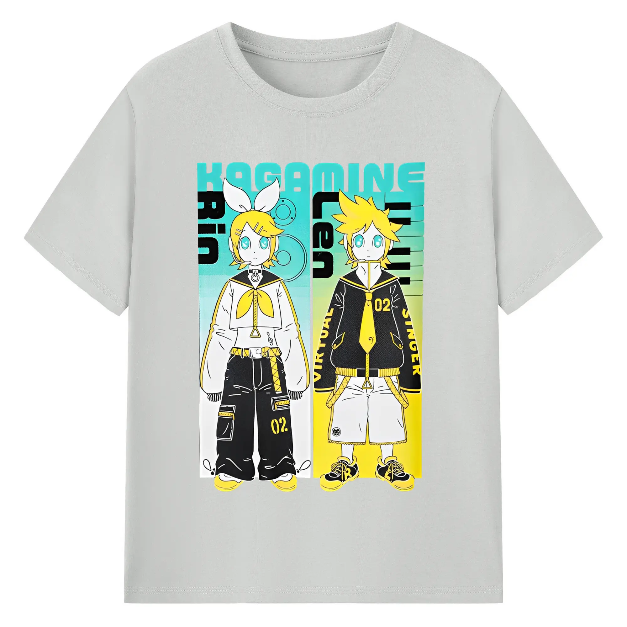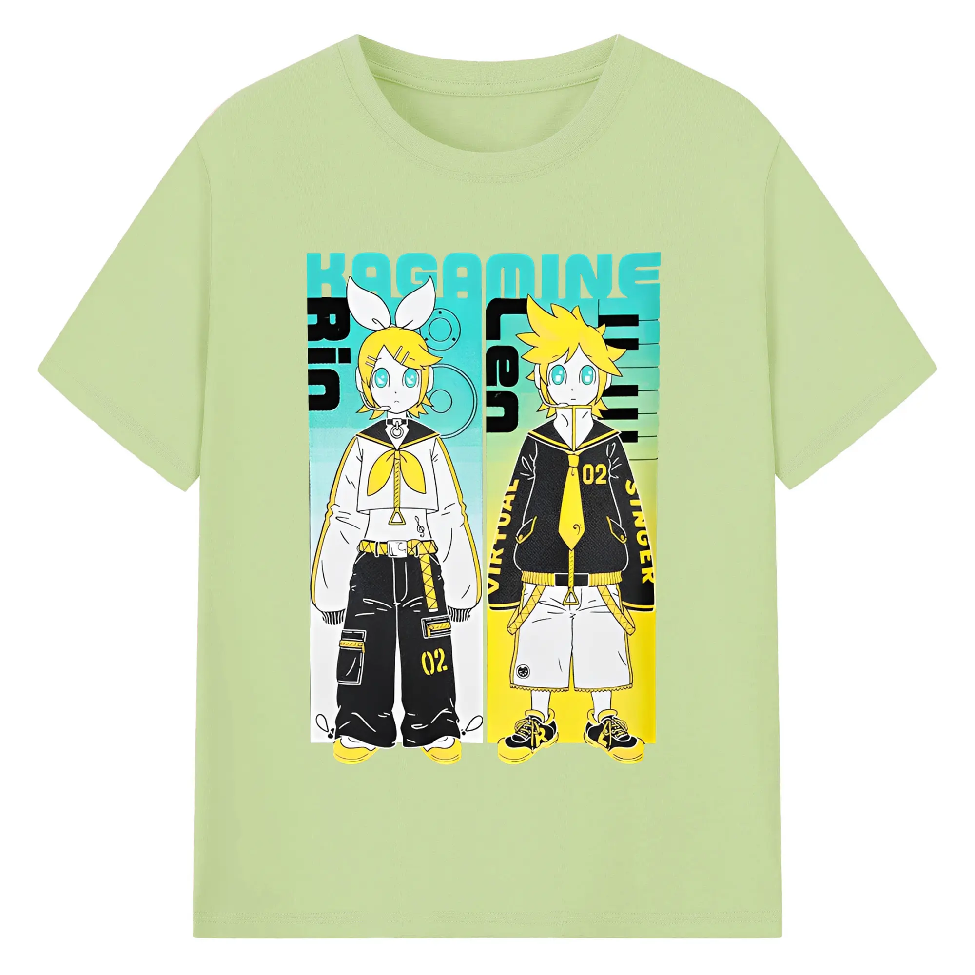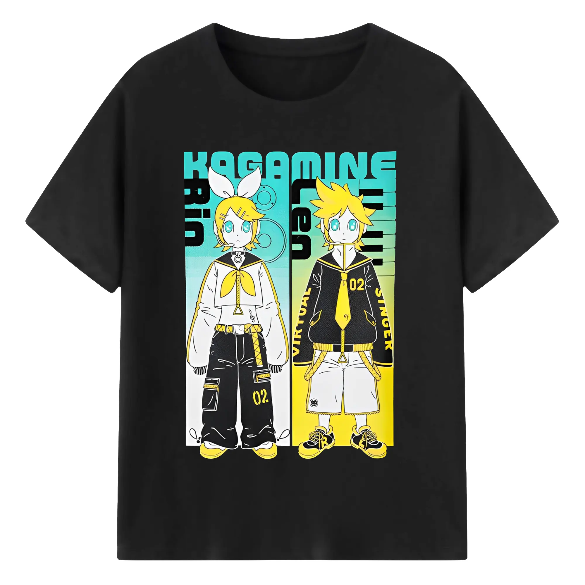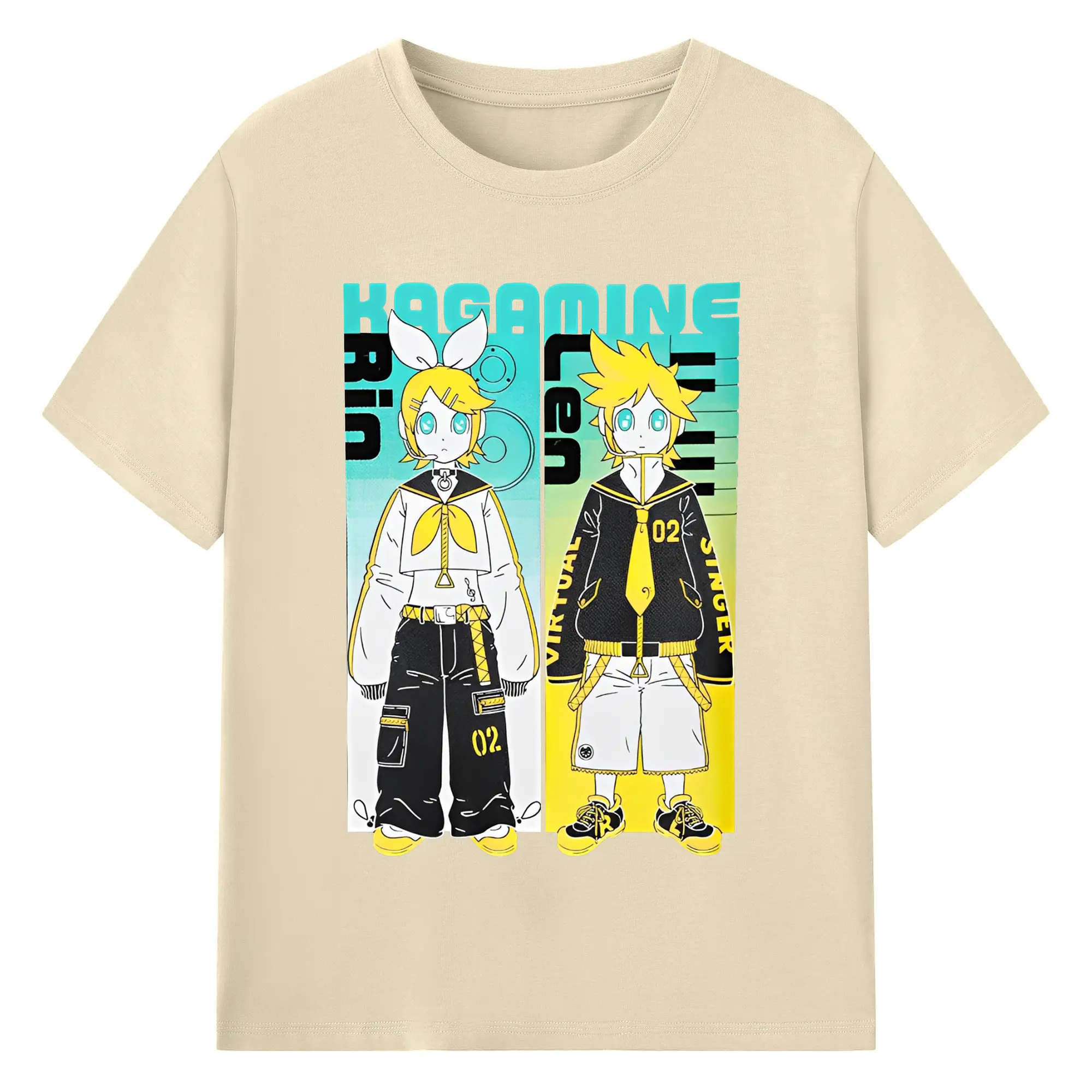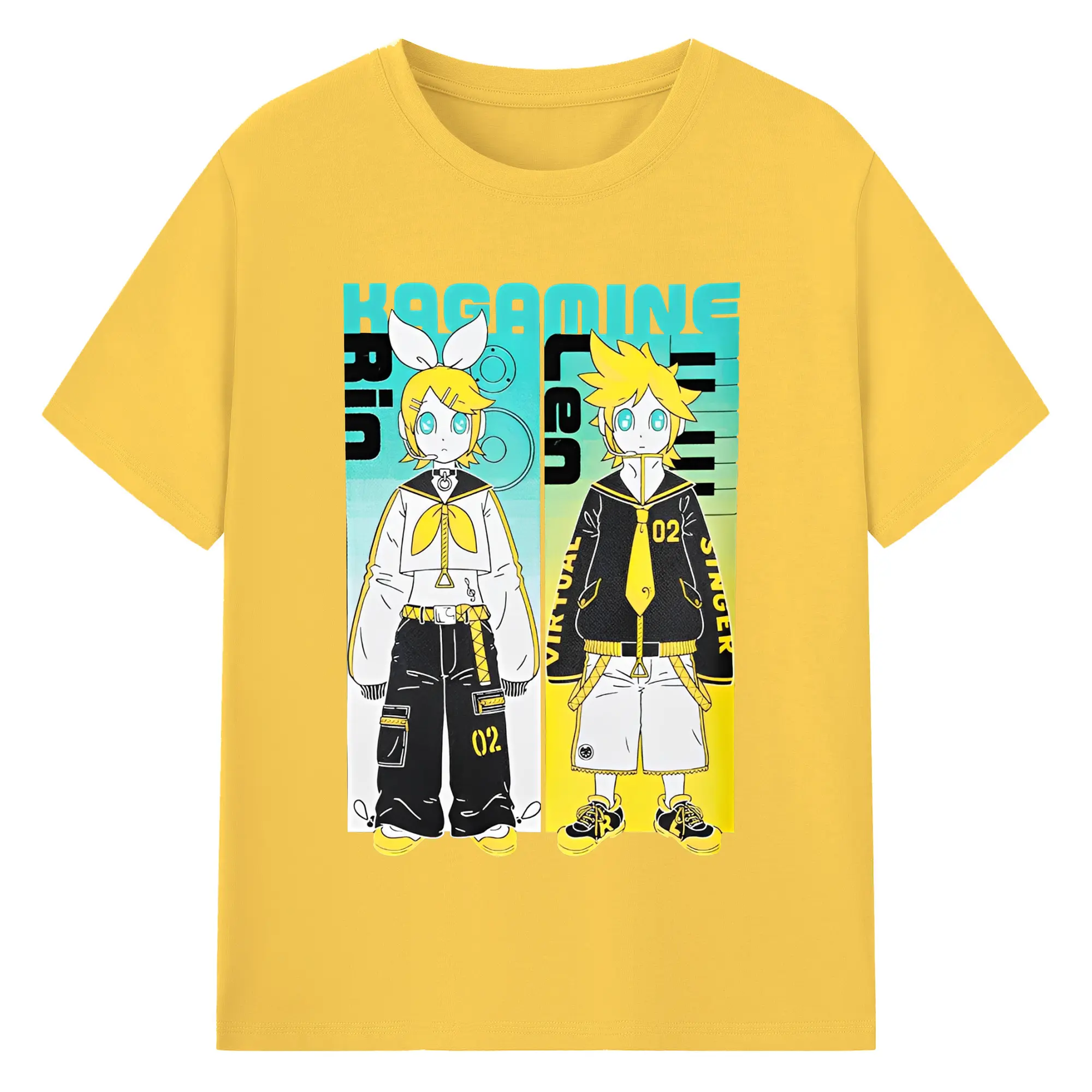 VOCALOID Kagamine Rin/Len 02 - 綿100% ヴィンテージ風 半袖Tシャツ ・ フロントプリント ・ 柔らか肌触り ・ 通気性 快適 ・ スポーツ カジュアル 外出用