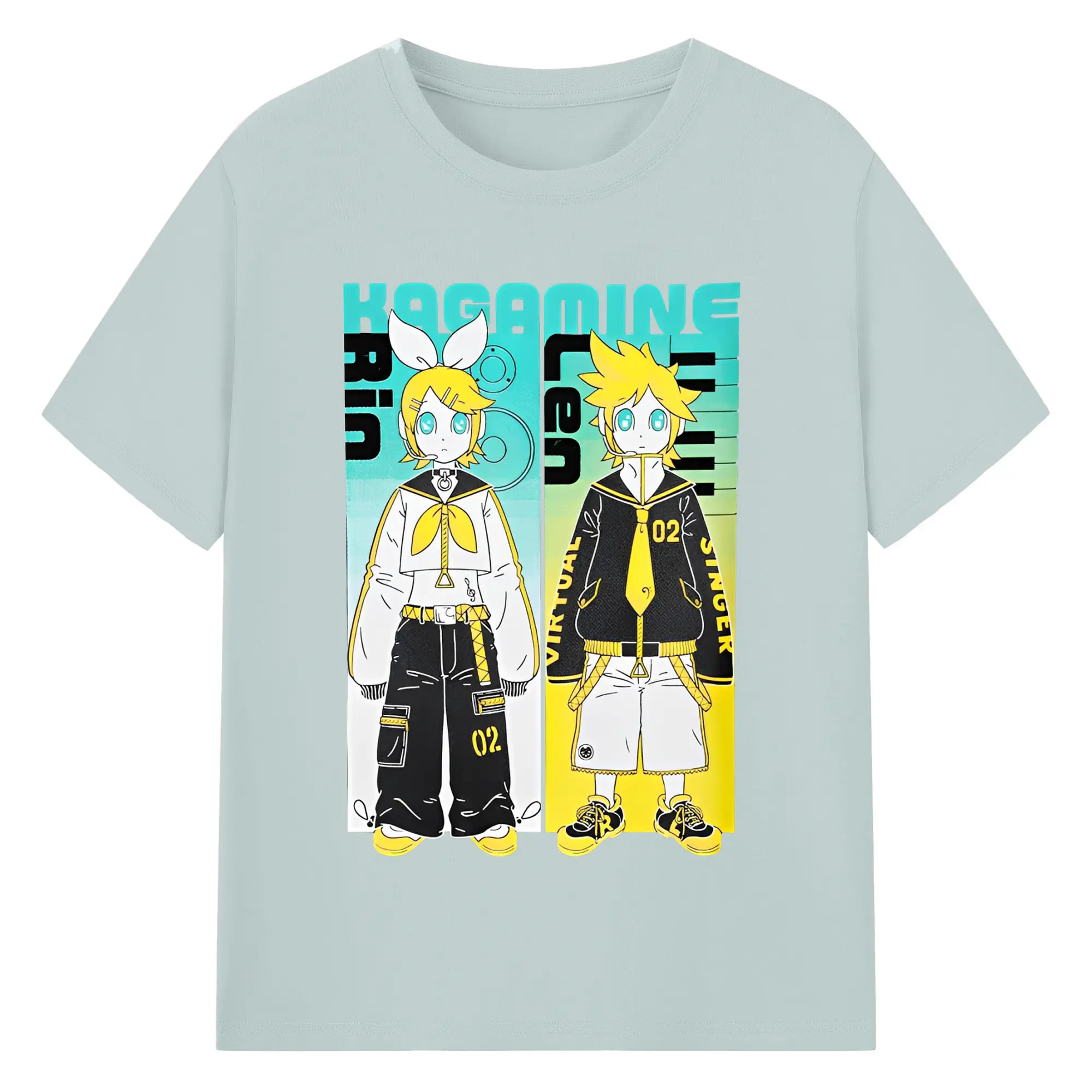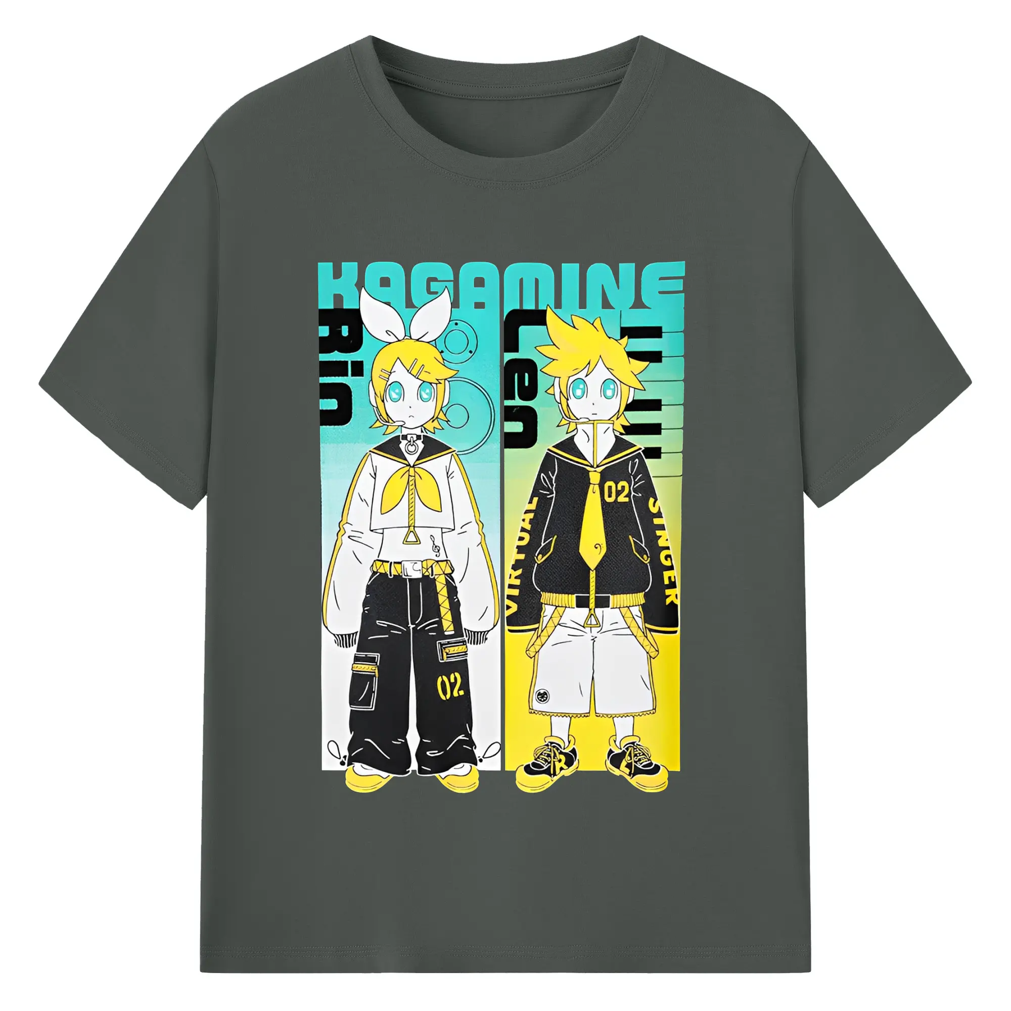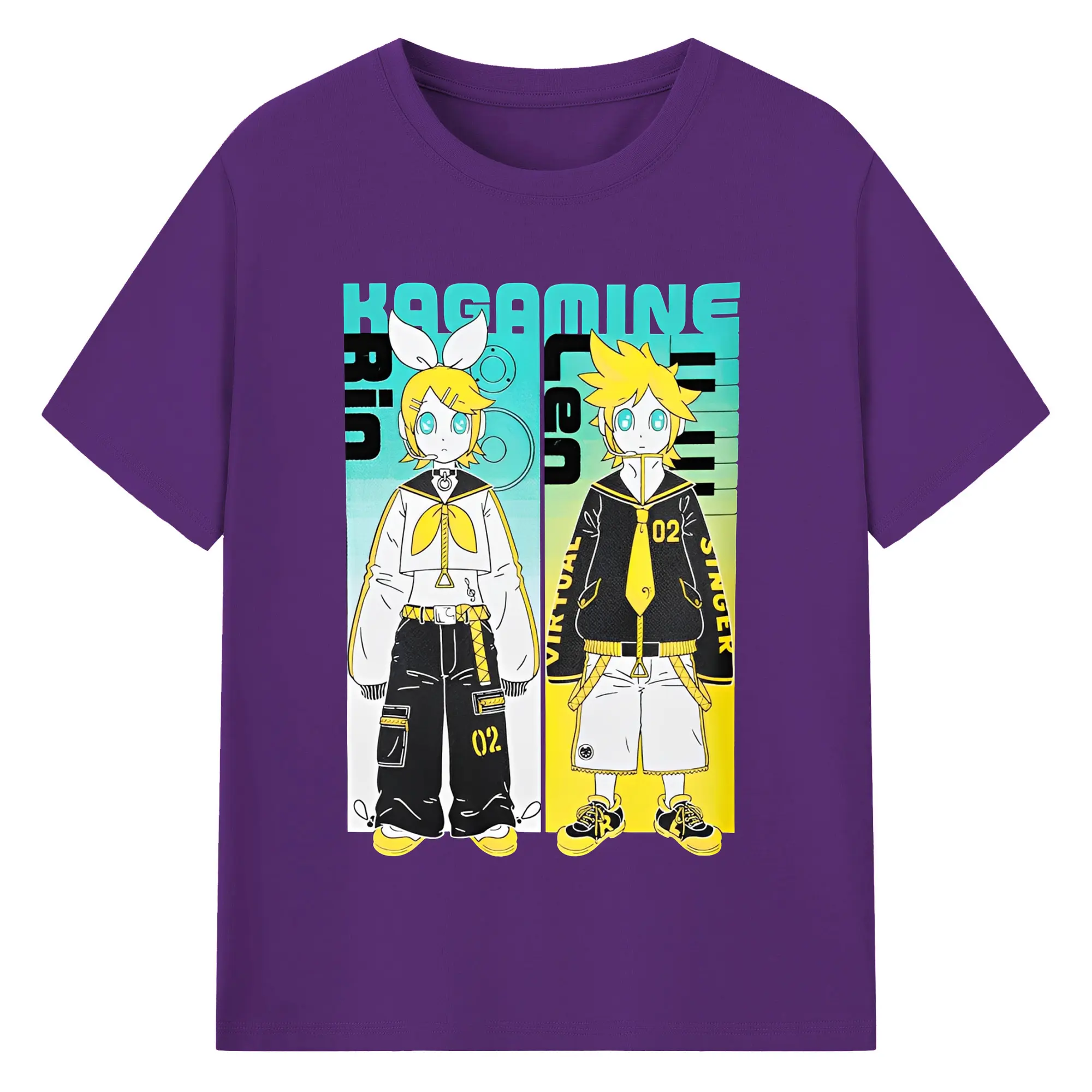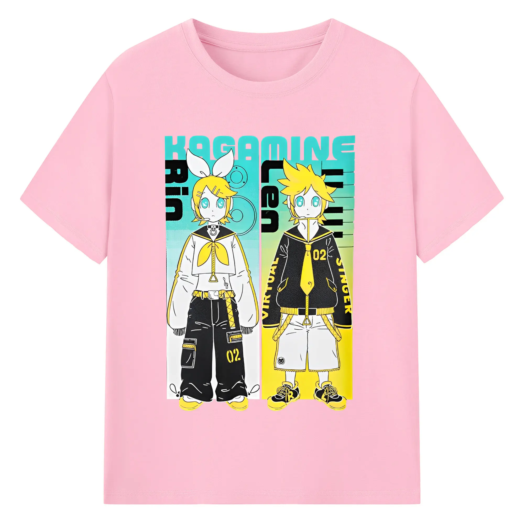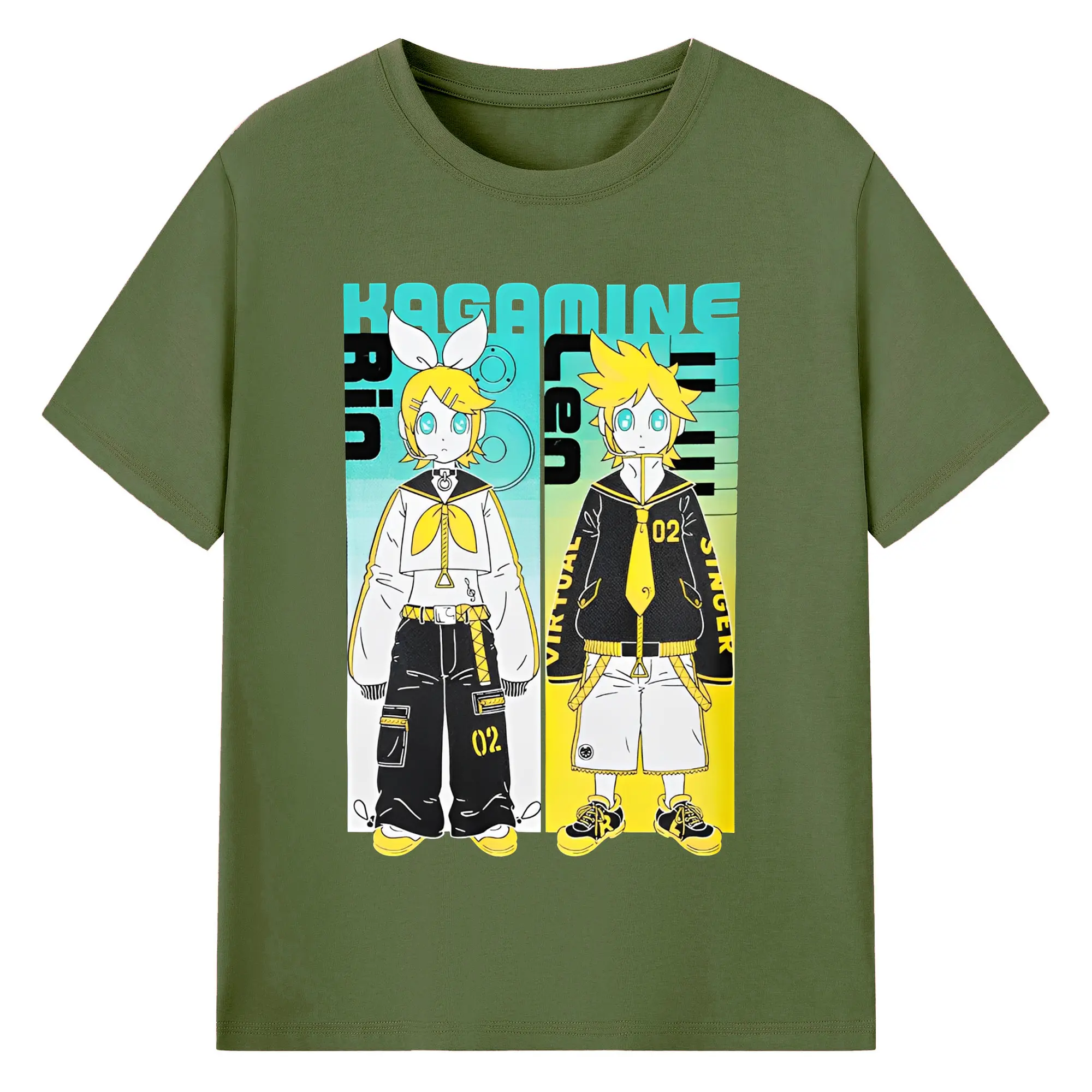VOCALOID Kagamine Rin/Len 02 - 綿100% ヴィンテージ風 半袖Tシャツ ・ フロントプリント ・ 柔らか肌触り ・ 通気性 快適 ・ スポーツ カジュアル 外出用