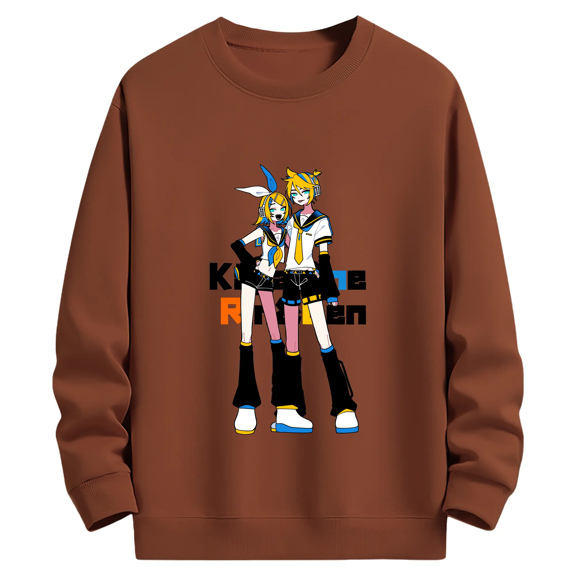 VOCALOID Kagamine Rin/Len - 綿100% ヴィンテージ風 半袖Tシャツ ・ フロントプリント ・ 柔らか肌触り ・ 通気性 快適 ・ スポーツ カジュアル 外出用