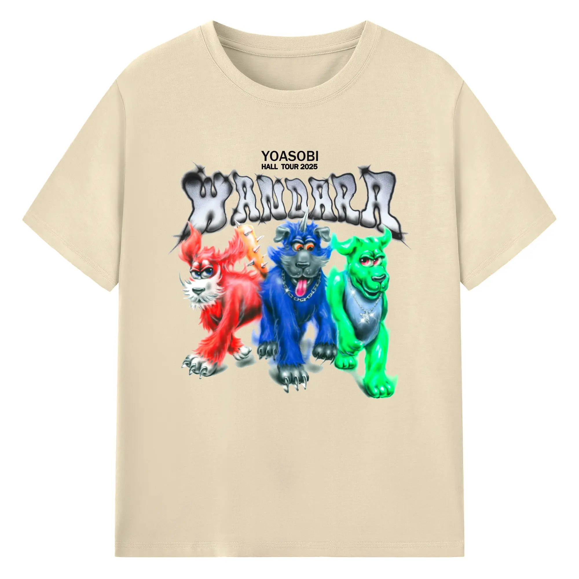 YOASOBI HALL TOUR 2025 WANDARA - 綿100% ヴィンテージ風 半袖Tシャツ ・ フロントプリント ・ 柔らか肌触り ・ 通気性 快適 ・ スポーツ カジュアル 外出用